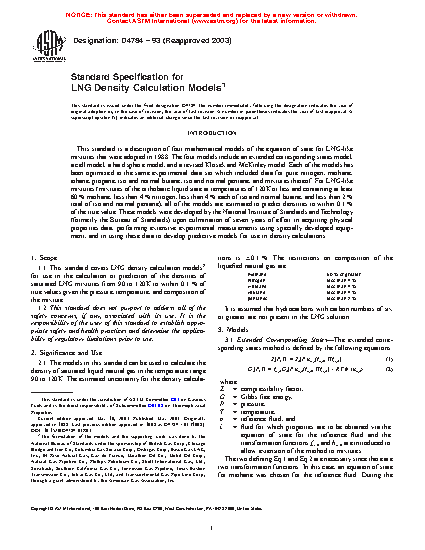 Standard for LNG Density Calculation Models