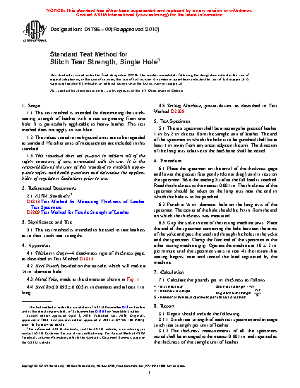 3.1 This test method is intended to be used to rate leathers as to their stitch tear strengths.