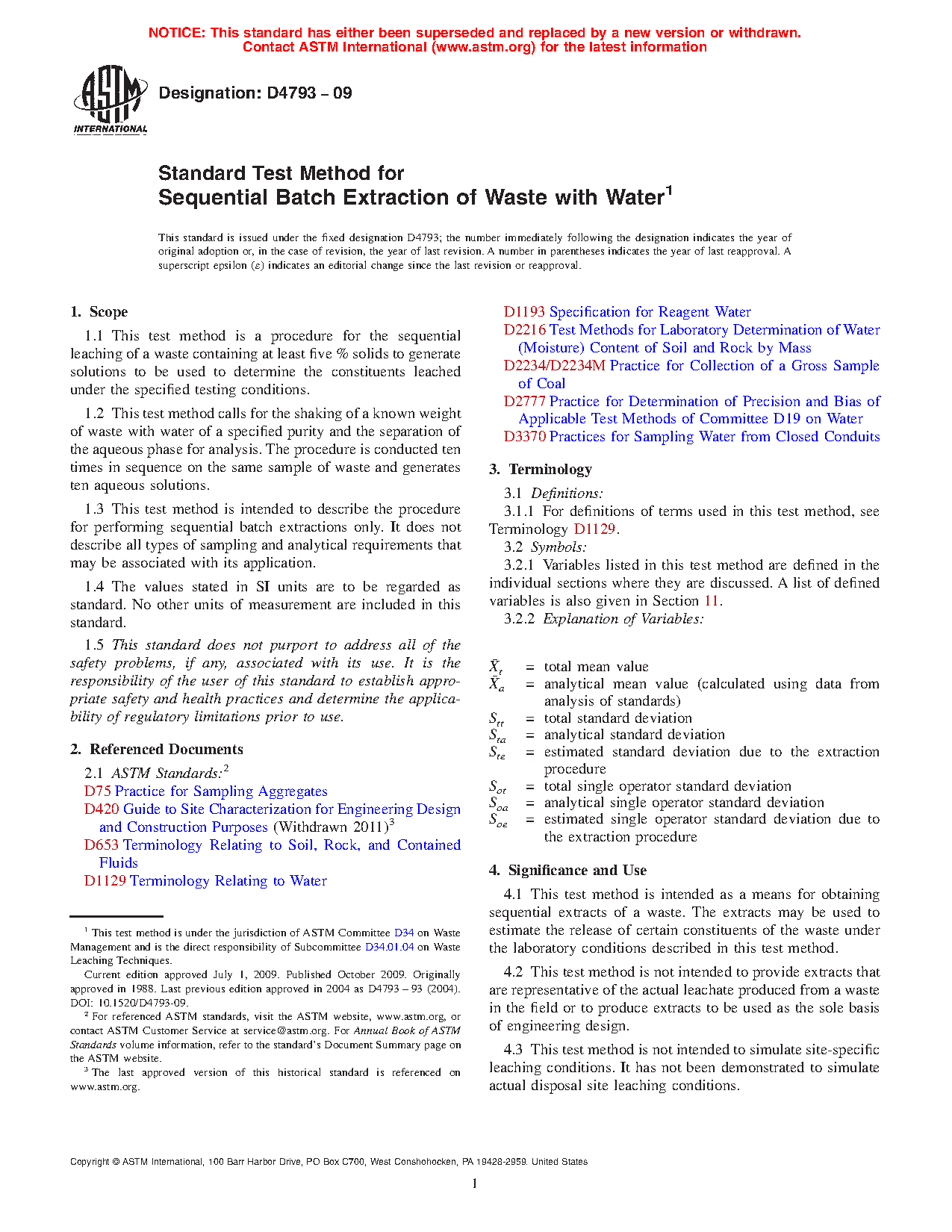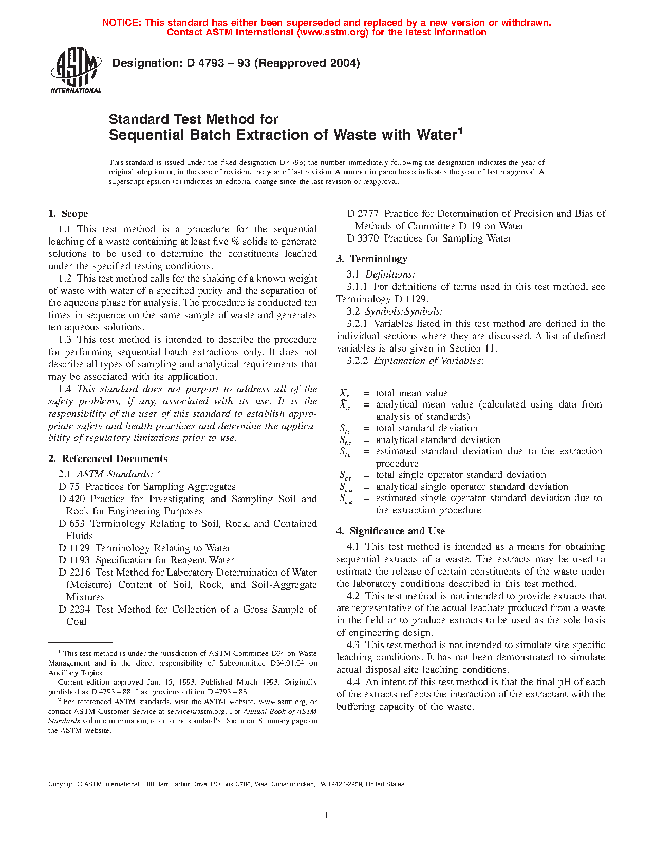 1.3 This test method is intended to describe the procedure for performing sequential batch extractions only. It does not describe all types of sampling and analytical requirements that may be associated with its application.