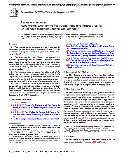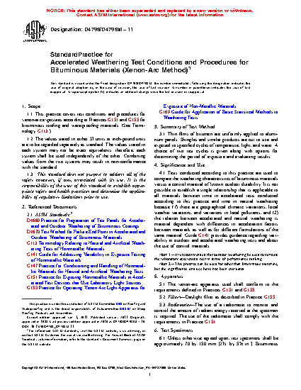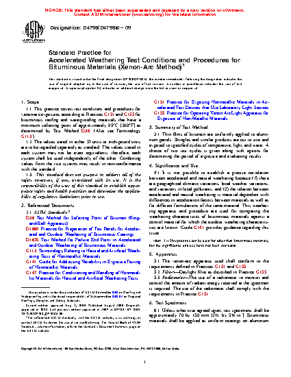 1.1 This practice covers test conditions and procedures for xenon-arc exposures according to Practices G151 and G155 for bituminous roofing and waterproofing materials. (See Terminology G113.)
