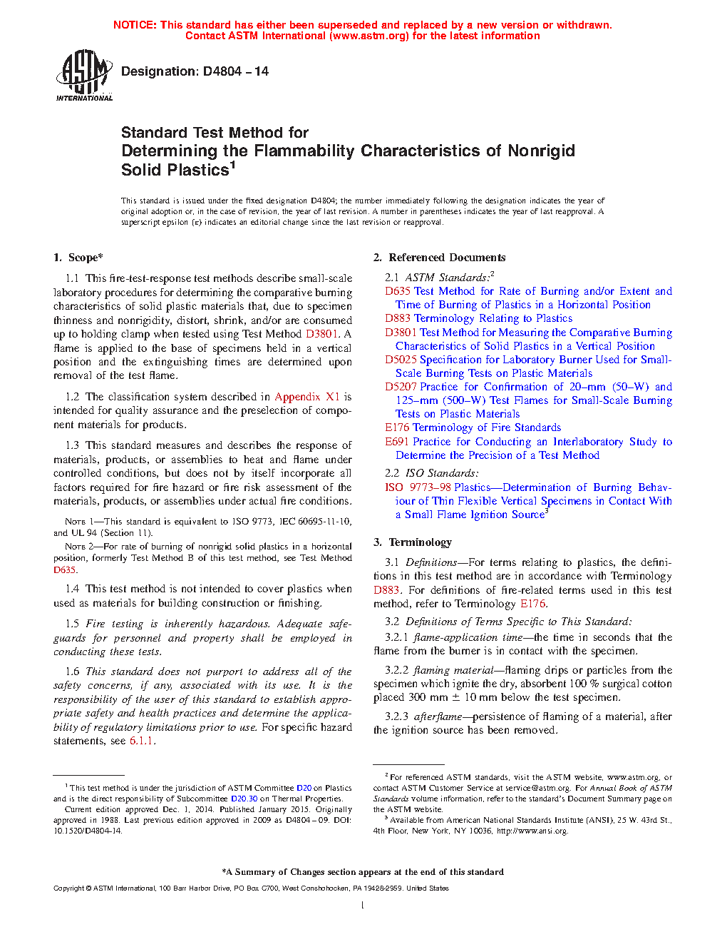 Note 1: This standard is equivalent to ISO 9773, IEC 60695-11-10, and UL 94 (Section 11).