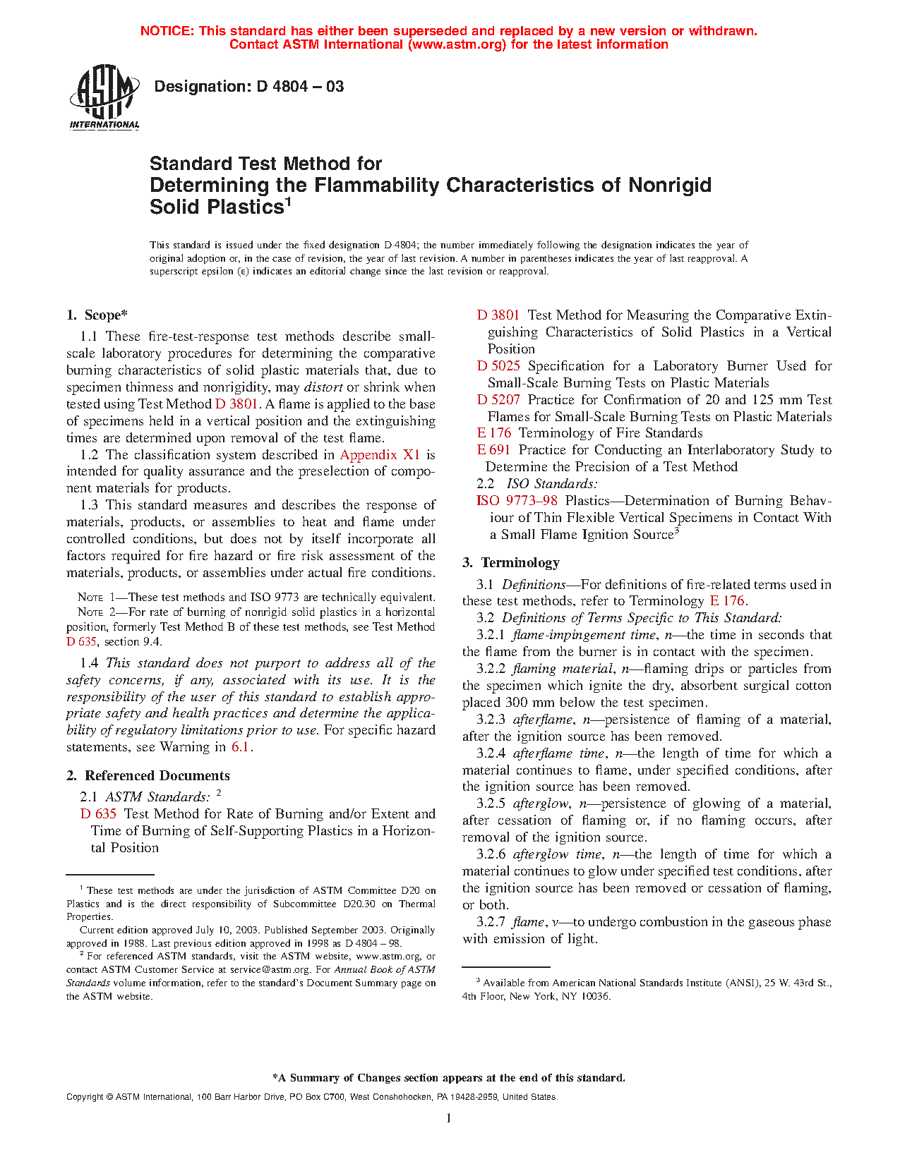 Note 2: For rate of burning of nonrigid solid plastics in a horizontal position, formerly Test Method B of this test method, see Test Method D635.