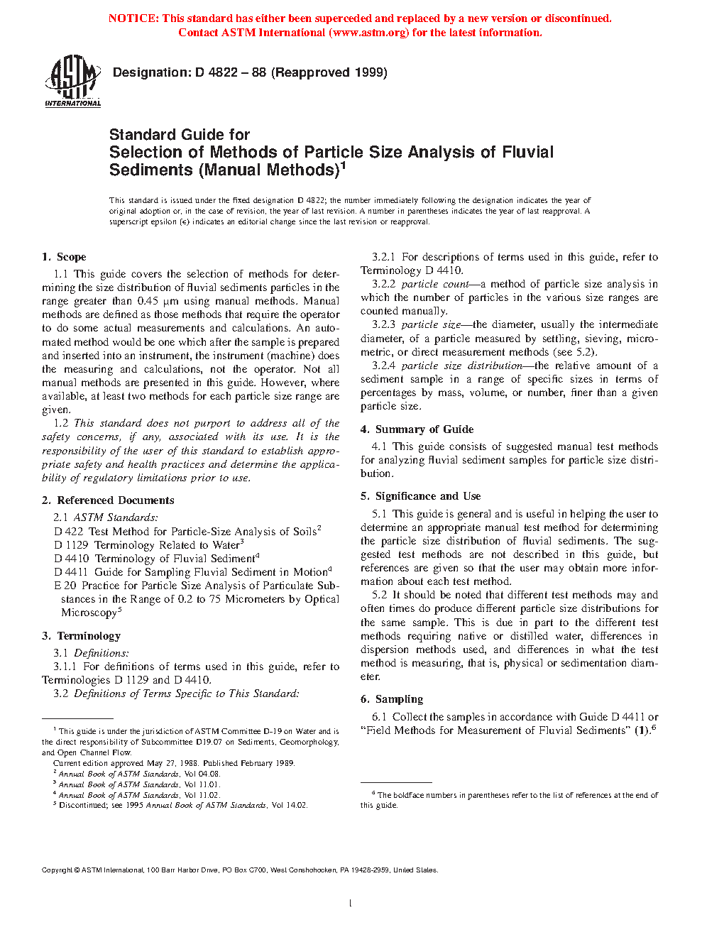 5.1 This guide is general and useful in helping the user to determine an appropriate manual test method for determining the particle size distribution of fluvial sediments. The suggested test methods are not described in this guide, but references are given so that the user may obtain more information about each test method.