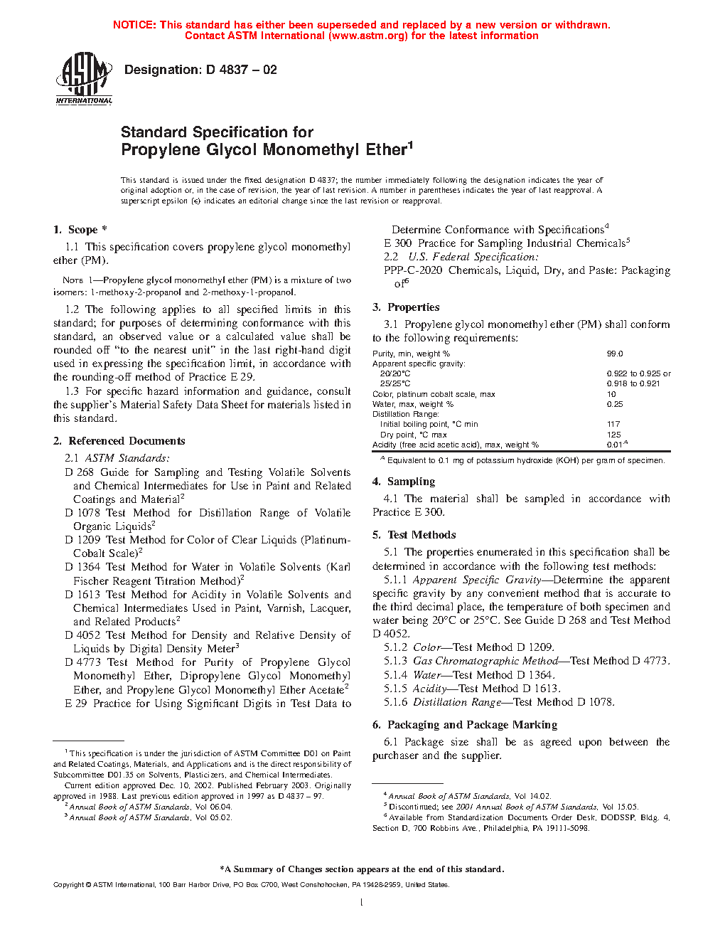 1.1 This specification covers propylene glycol monomethyl ether (PM).