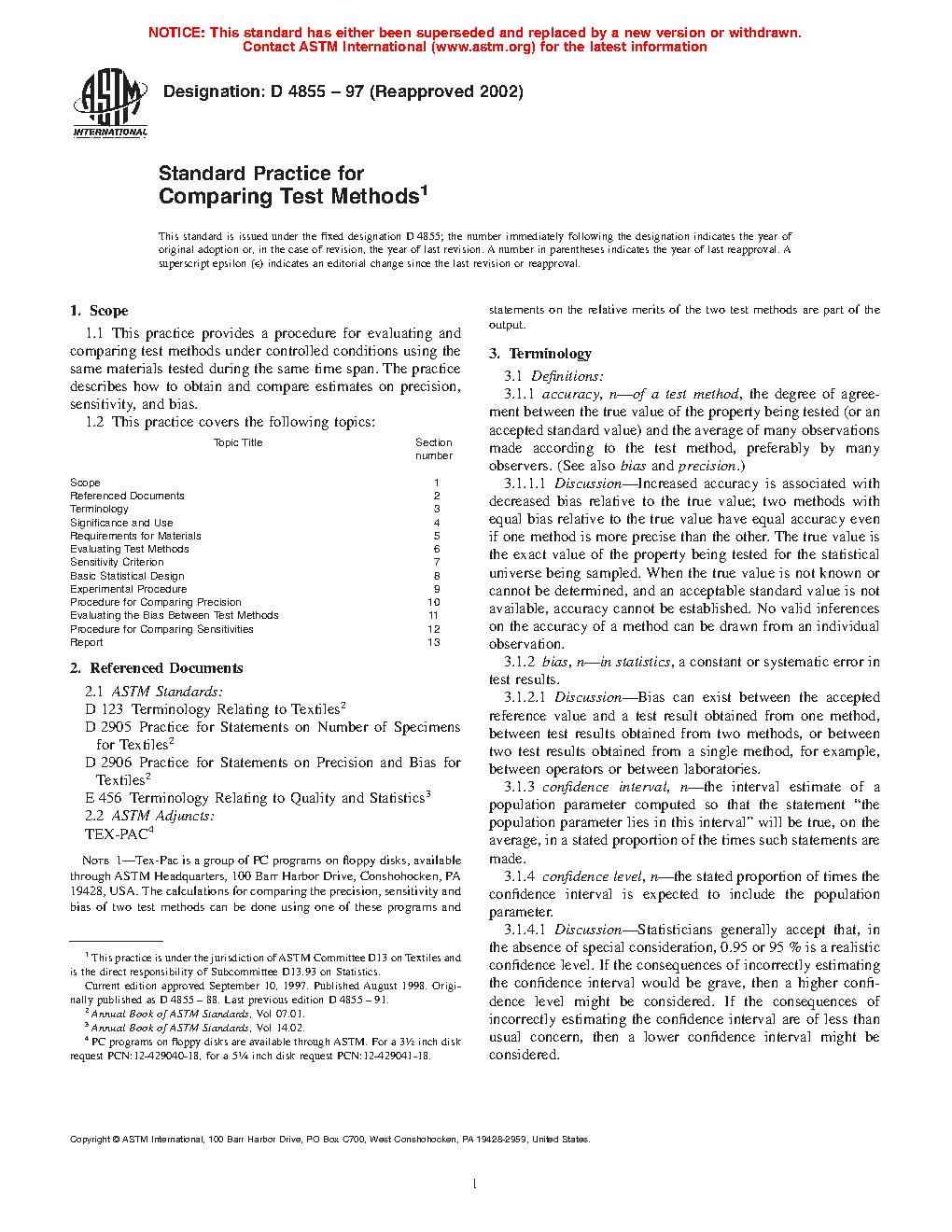 Task groups developing a test method frequently find themselves with two or more alternative procedures that must be compared. Three common situations are: