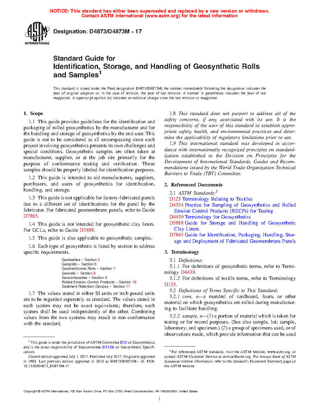 1.2 This guide is intended to aid manufacturers, suppliers, purchasers, and users of geosynthetics for identification, handling, and storage.