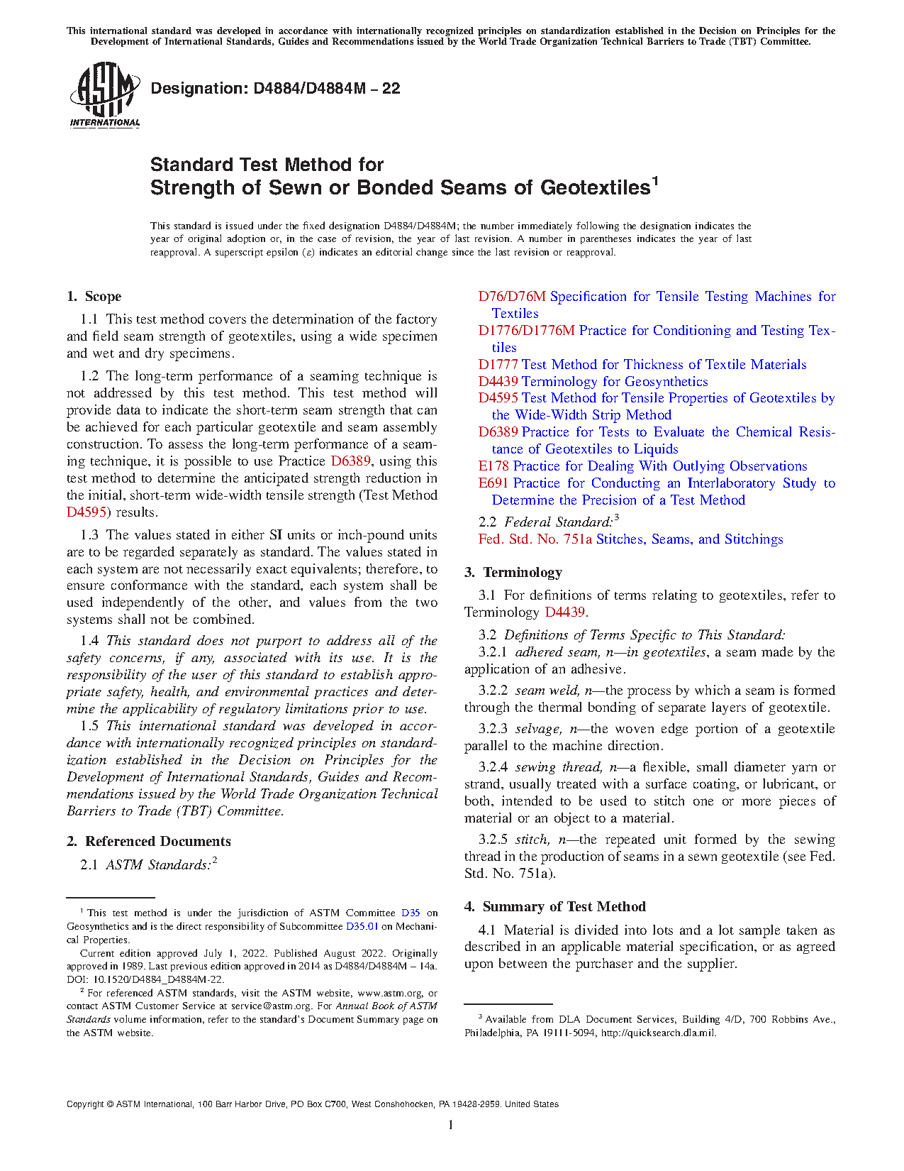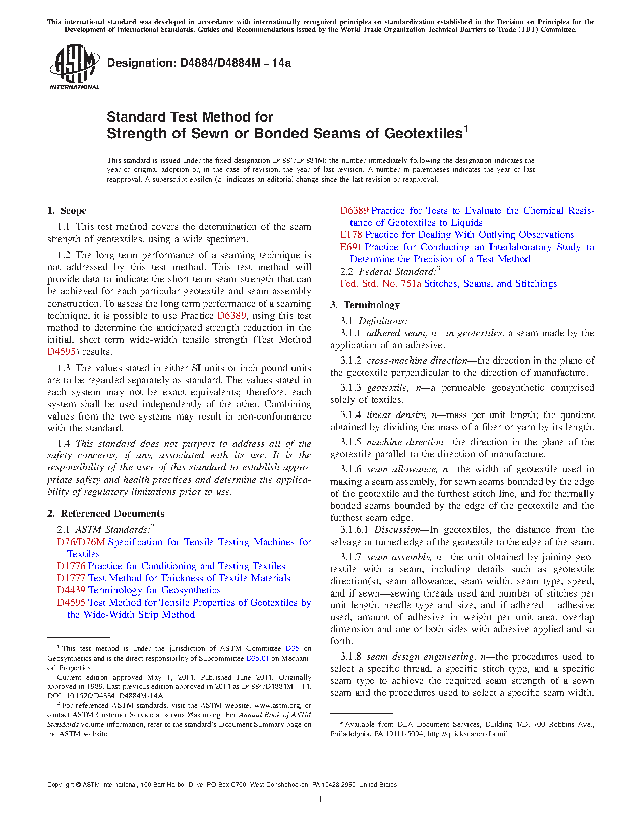 5.2 This test method can be used to measure the seam strength of geotextiles, and may also be used for acceptance testing of commercial shipments of geotextiles.