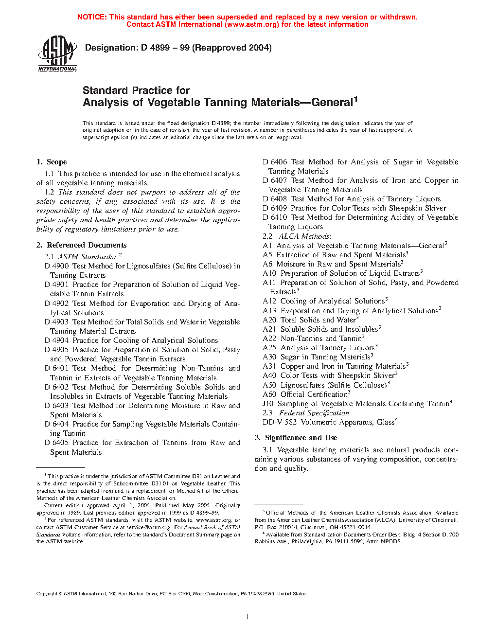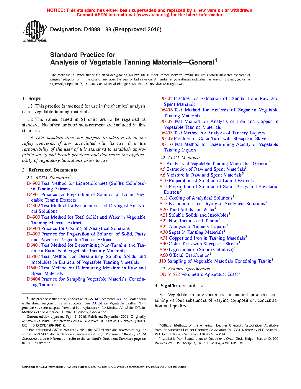 3.2 The methods referenced are useful for analyzing and testing vegetable tanning materials for moisture, water-extractable substances, cold-soluble fractions, tannins, non-tannins, acidity, tanning properties, the color of tanned leather, and the presence or absence of certain admixtures.