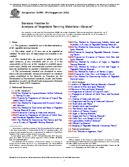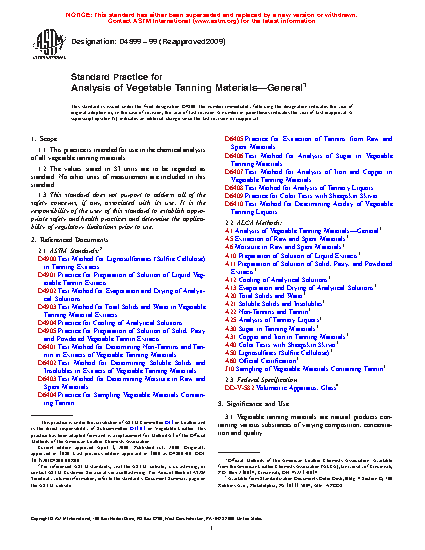 1.1 This practice is intended for use in the chemical analysis of all vegetable tanning materials.