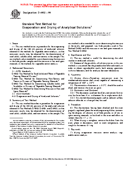 Standard Practice for Evaporation and Drying of Analytical Solutions