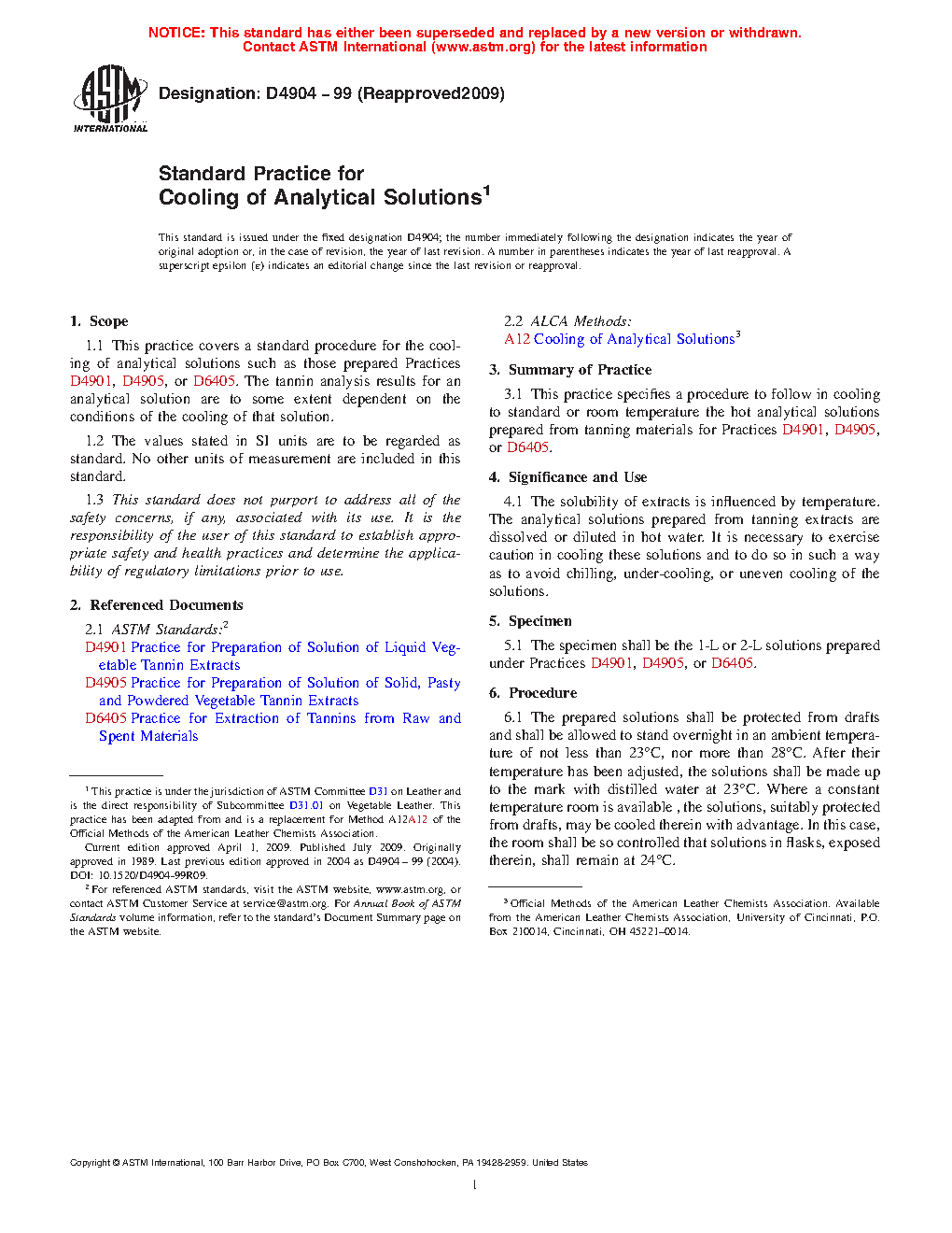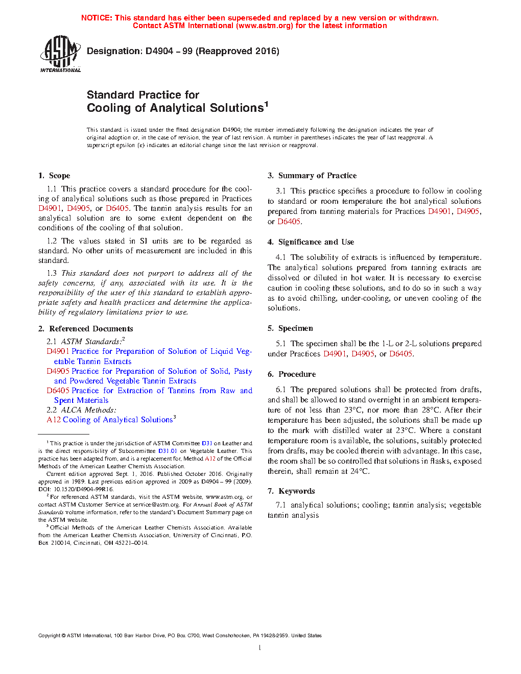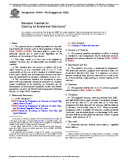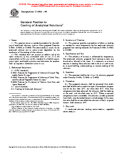 1.1 This practice is intended for use in the cooling of the analytical solutions, prepared under Methods D4901, D4905, and ALCA Method A5, since the analytical results obtained are to some extent dependent on the conditions of cooling.