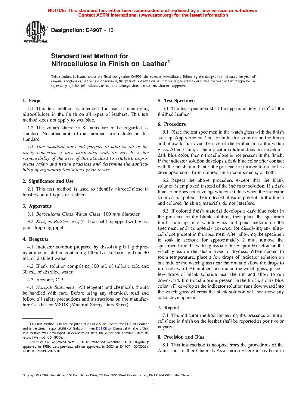 2.1 This test method is used to identify nitrocellulose in finishes on all types of leathers.