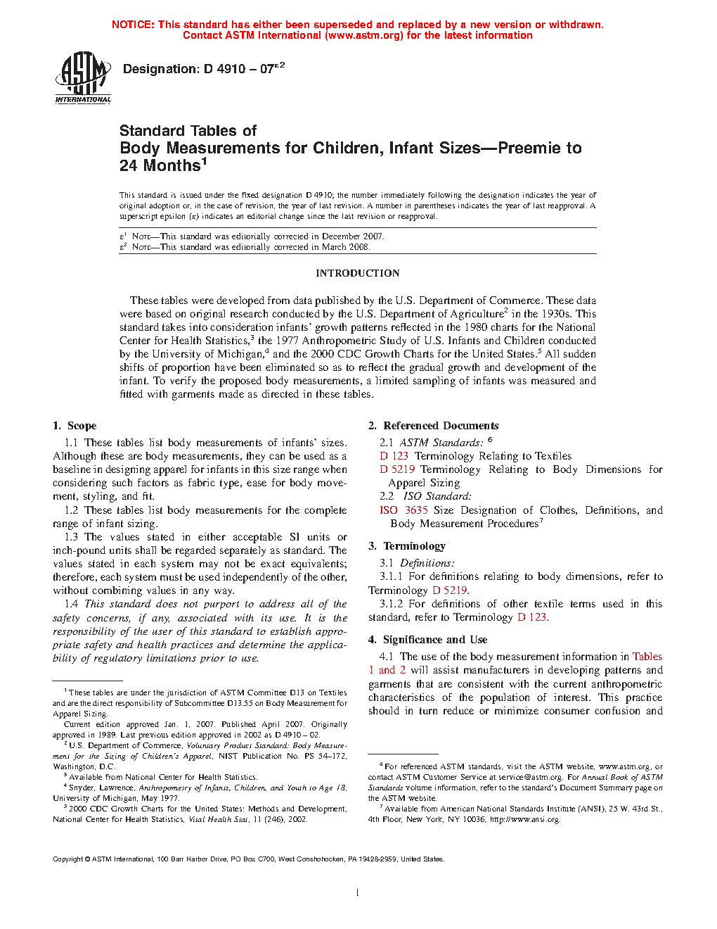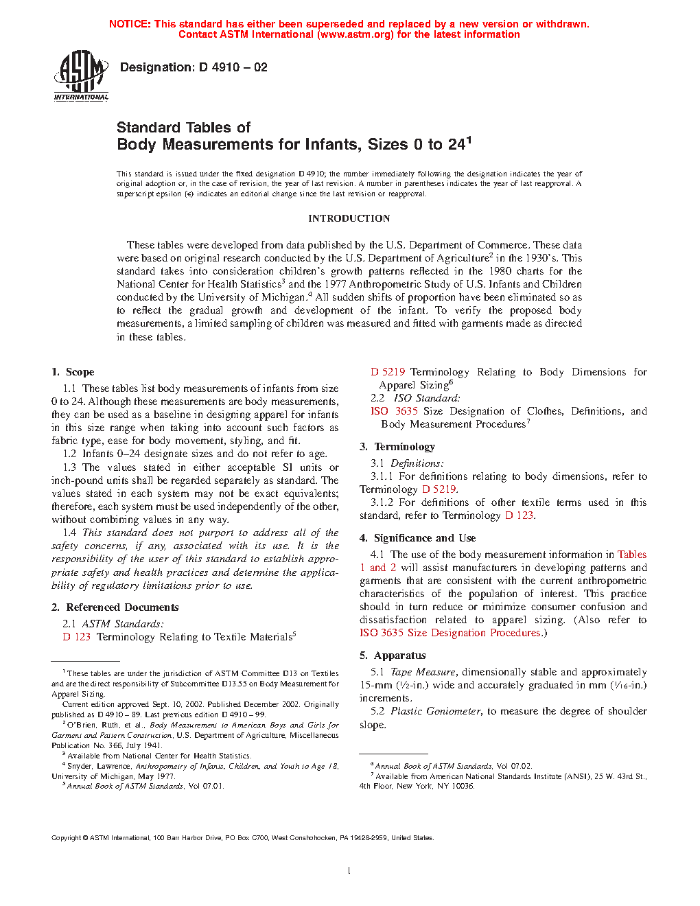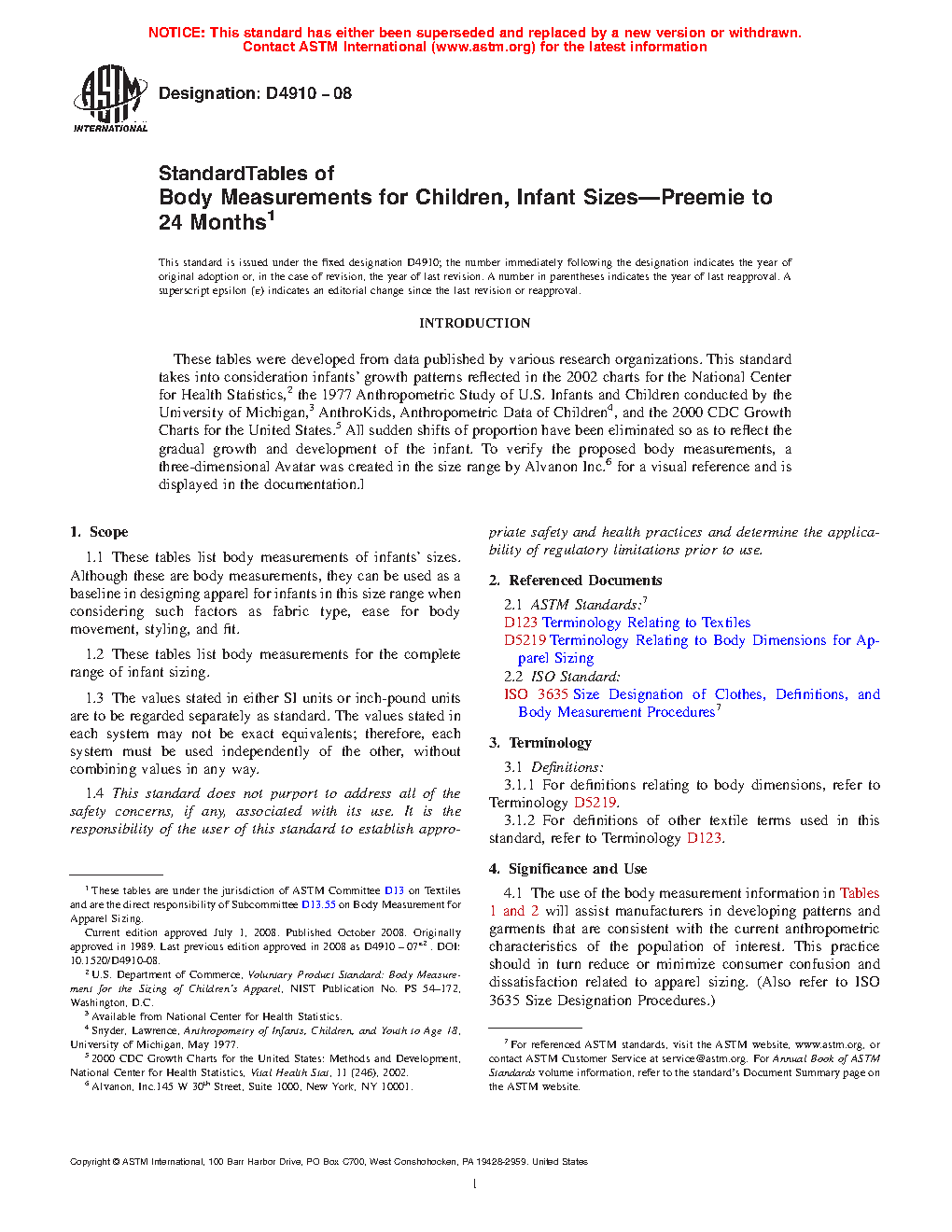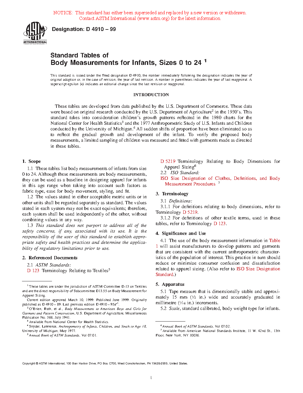 1.1 These tables list body measurements of infants’ sizes. Although these are body measurements, they can be used as a baseline in designing apparel for infants in this size range when considering such factors as fabric type, ease for body movement, styling, and fit.