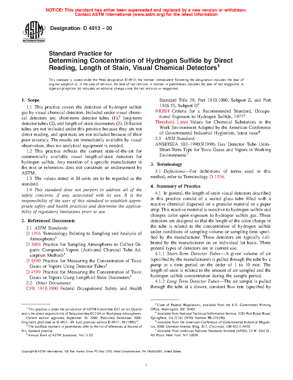 1.2 This practice reflects the current state-of-the-art for commercially available visual length-of-stain detectors for hydrogen sulfide. Any mention of a specific manufacturer in the text or references does not constitute an endorsement by ASTM.