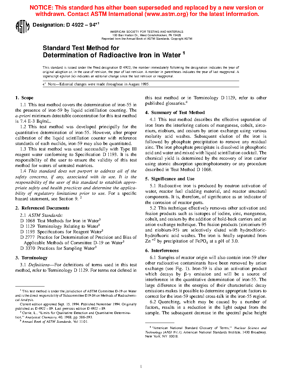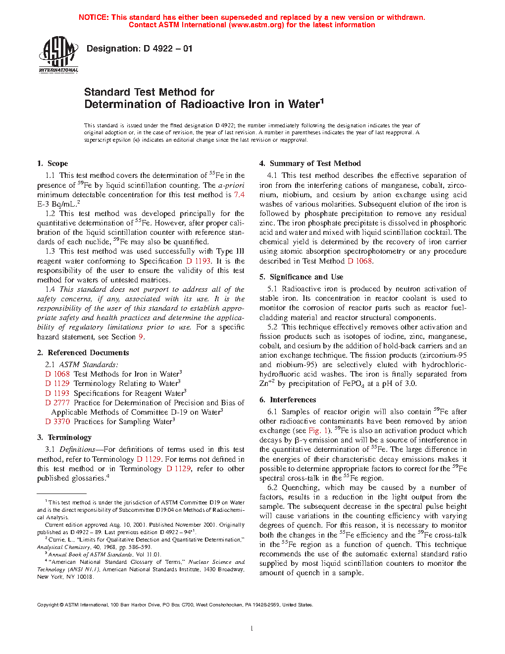 1.2 This test method was developed principally for the quantitative determination of 55Fe. However, after proper calibration of the liquid scintillation counter with reference standards of each nuclide, 59Fe may also be quantified.