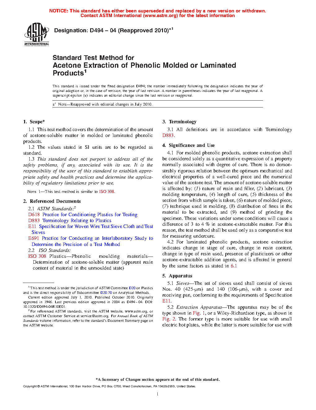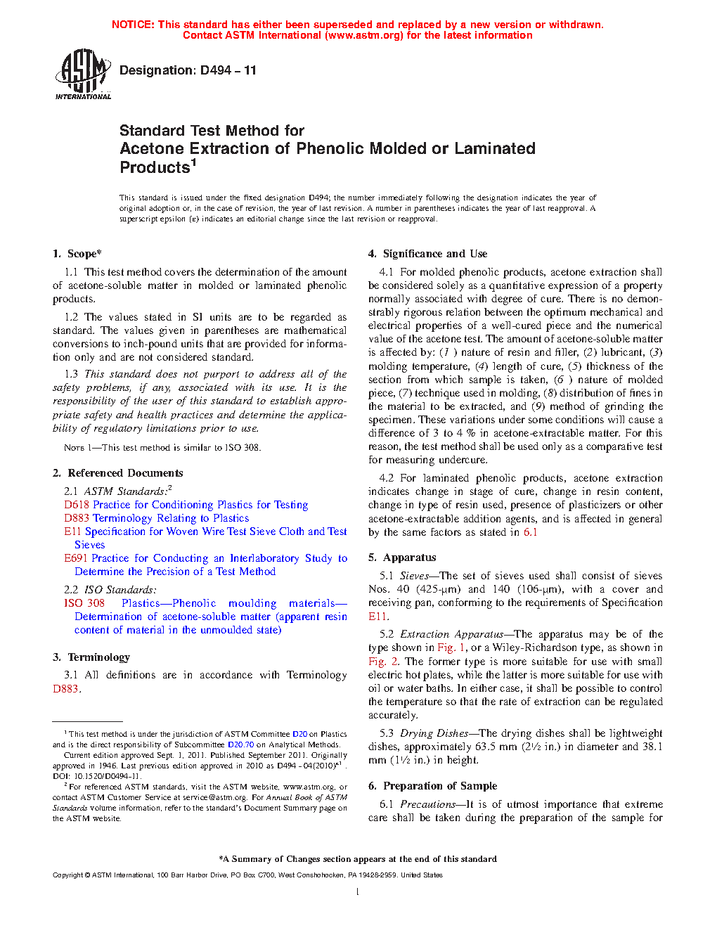 4.2 For laminated phenolic products, acetone extraction indicates change in stage of cure, change in resin content, change in type of resin used, presence of plasticizers or other acetone-extractable addition agents, and is affected in general by the same factors as stated in 6.1