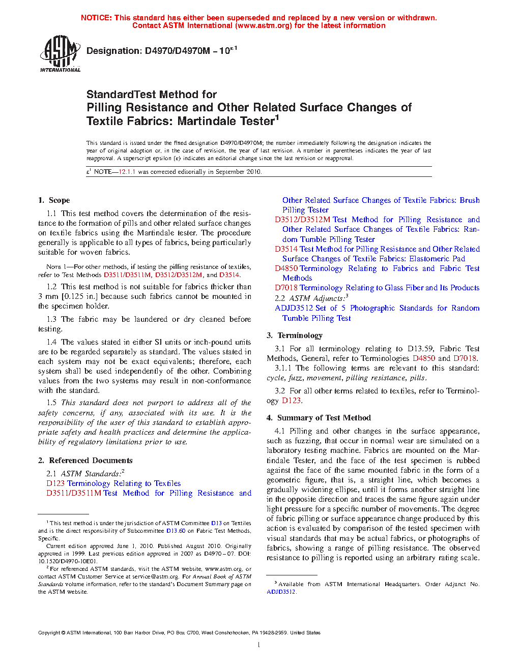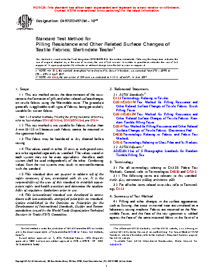 Note 1: For other methods, if testing the pilling resistance of textiles, refer to Test Methods D3511/D3511M, D3512/D3512M, and D3514.