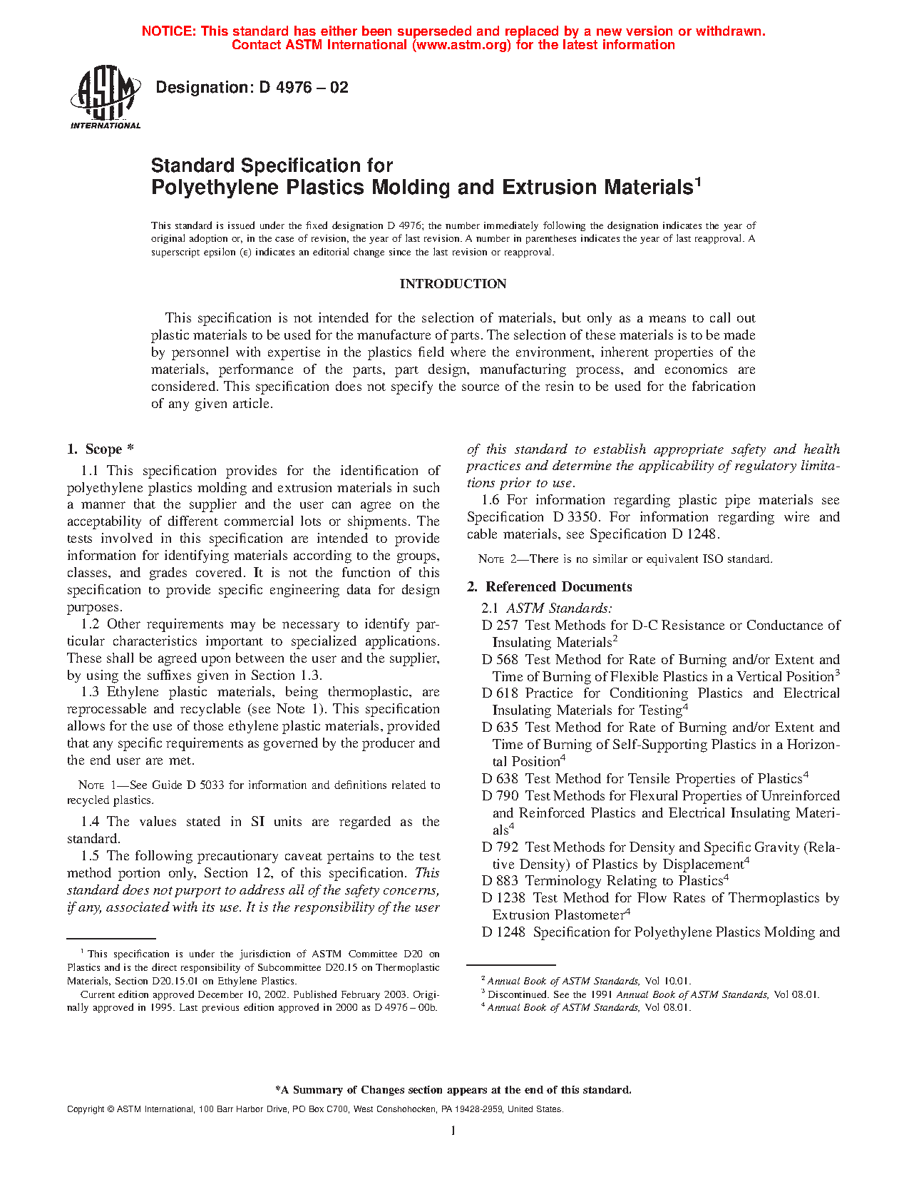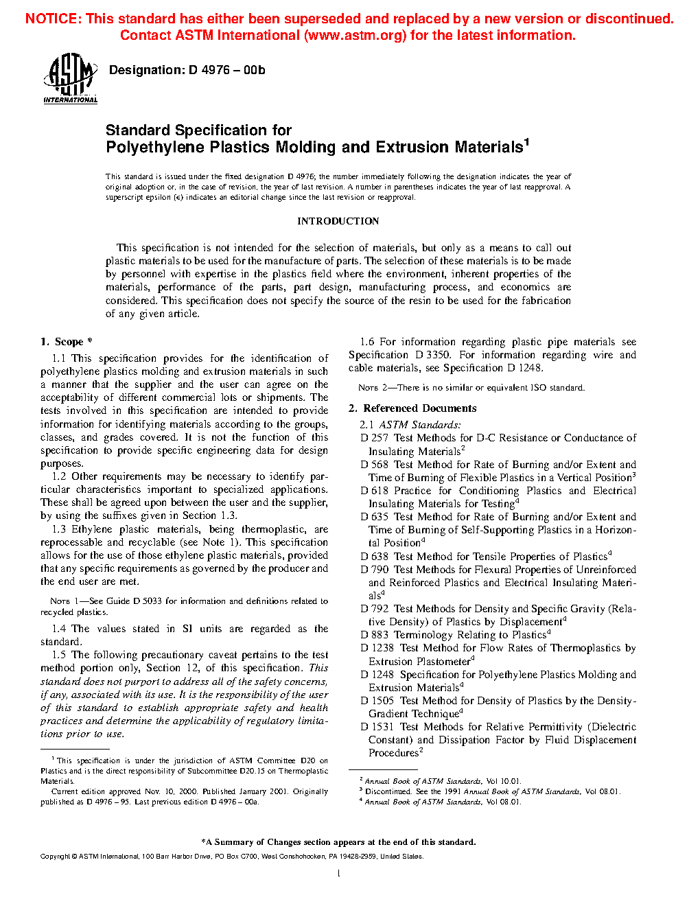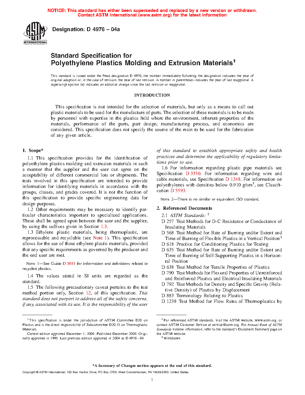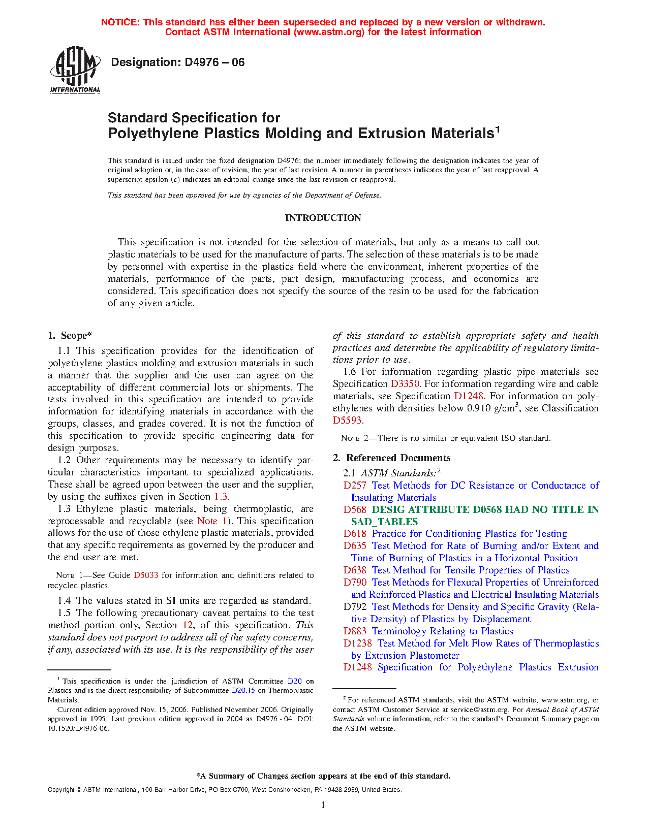 1.6 For information regarding plastic pipe materials see Specification D3350. For information regarding wire and cable materials, see Specification D1248. For information on polyethylenes with densities below 0.910 g/cm3, see Classification D5593.