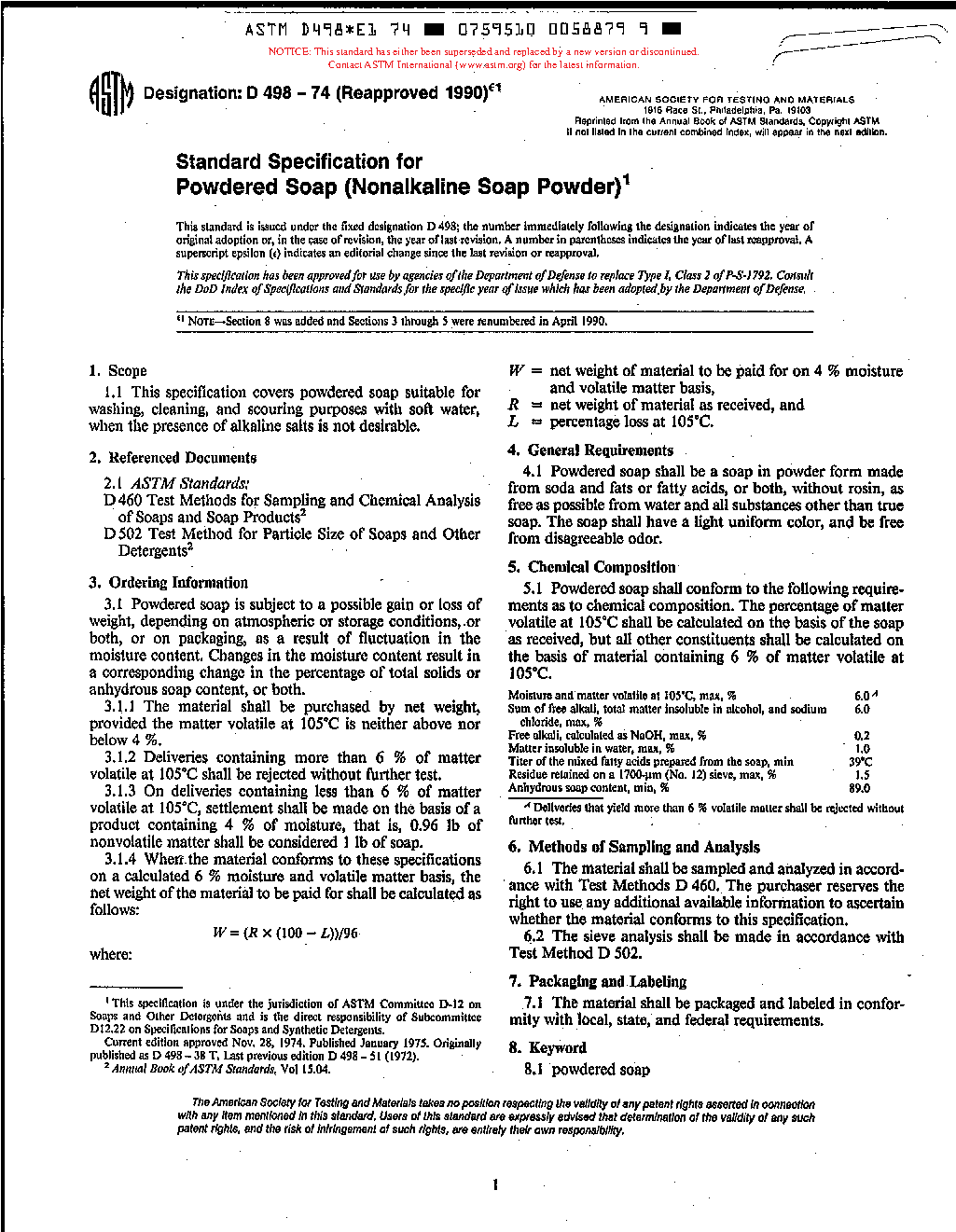 Standard Specification for Powdered Soap (Nonalkaline Soap Powder)