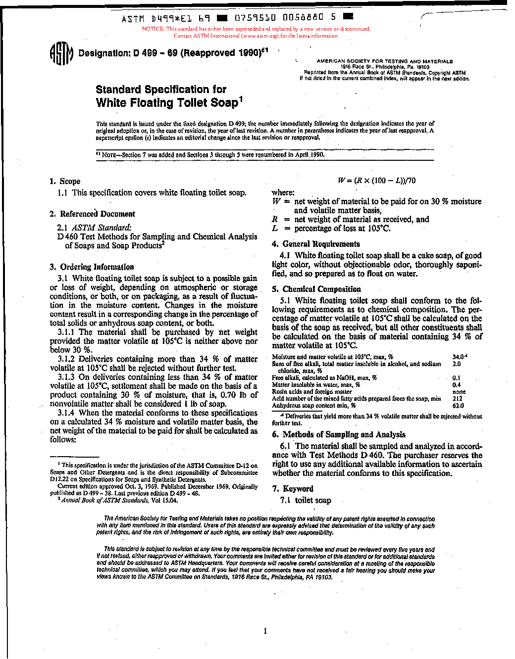 Standard Specification for White Floating Toilet Soap