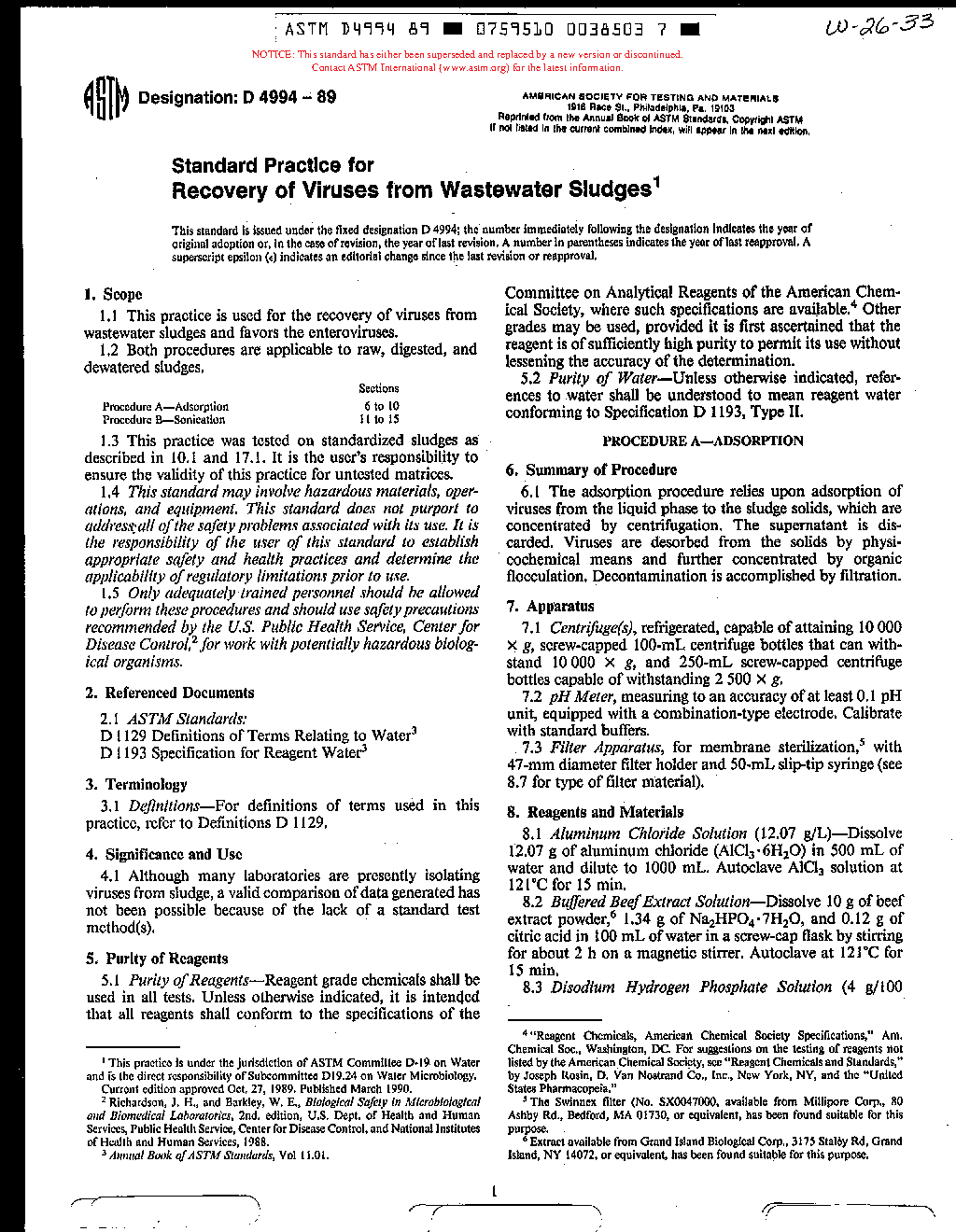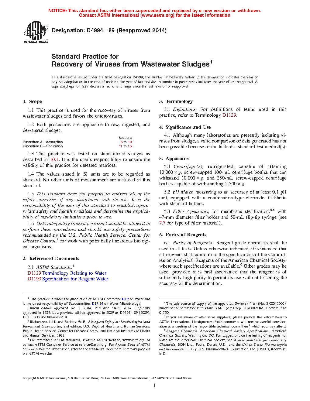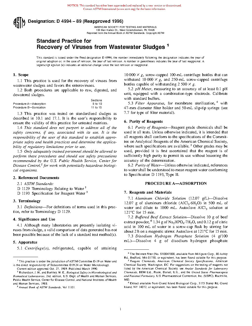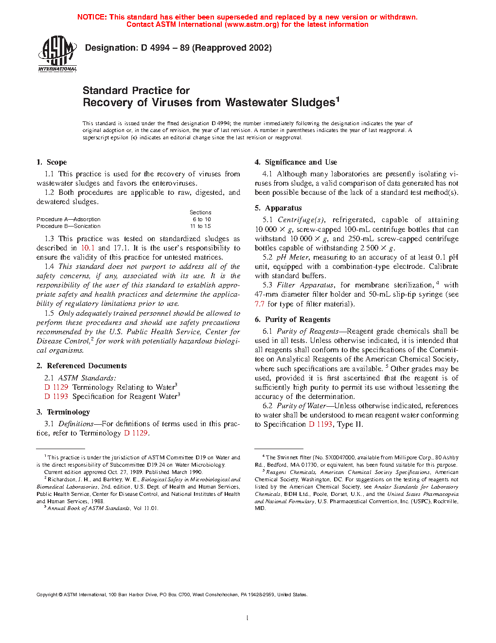 Standard Practice for Recovery of Viruses from Wastewater Sludges