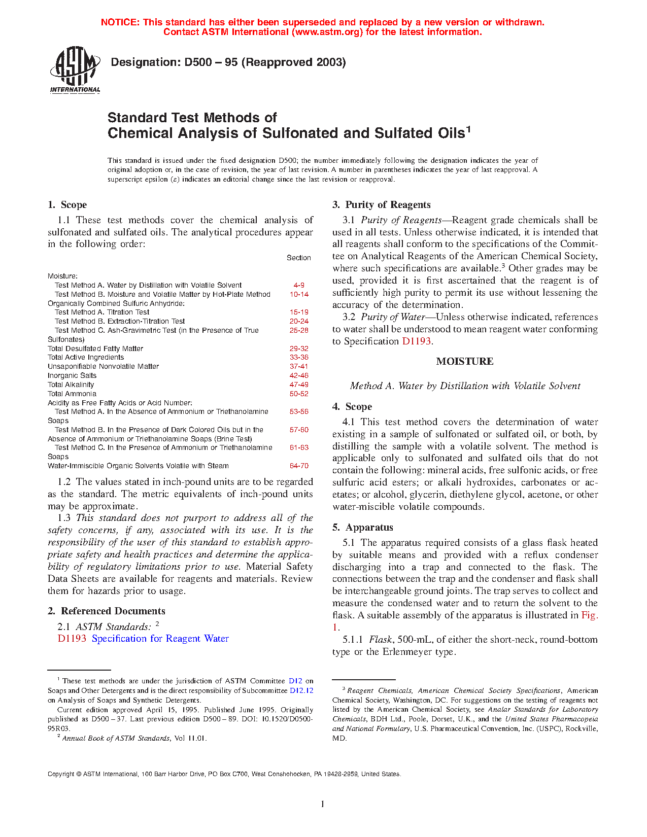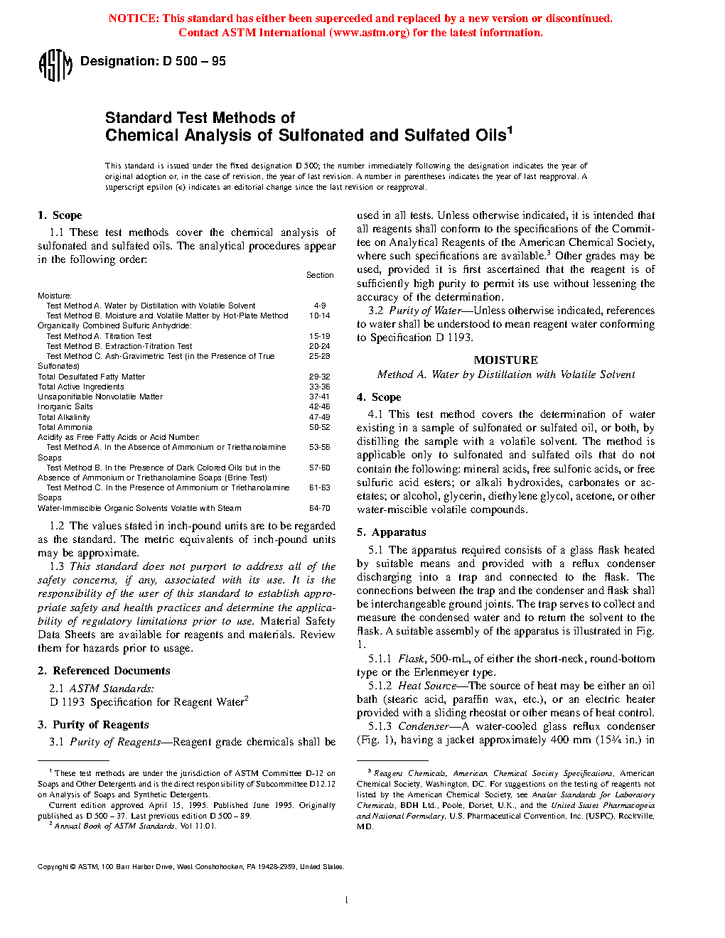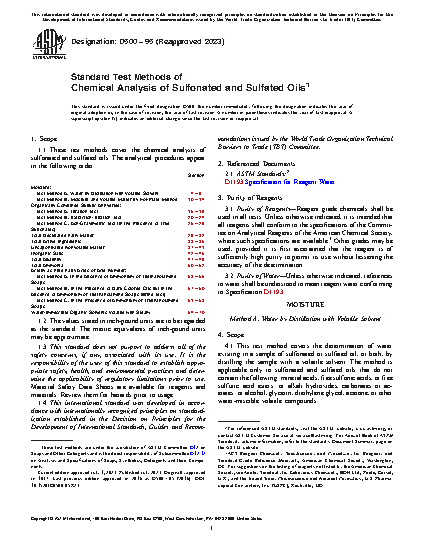 1.1 These test methods cover the chemical analysis of sulfonated and sulfated oils. The analytical procedures appear in the following order: