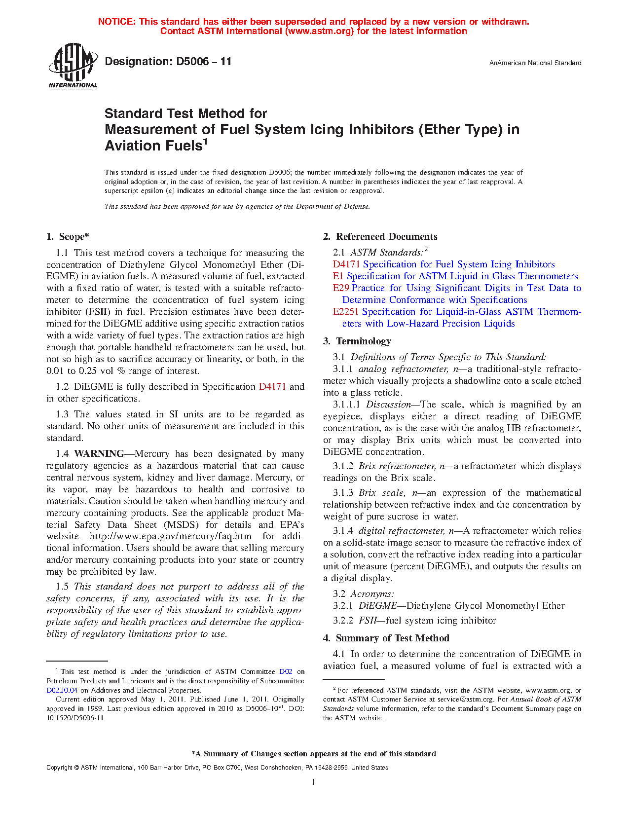 1.4 WARNING—Mercury has been designated by many regulatory agencies as a hazardous substance that can cause serious medical issues. Mercury, or its vapor, has been demonstrated to be hazardous to health and corrosive to materials. Use Caution when handling mercury and mercury-containing products. See the applicable product Safety Data Sheet (SDS) for additional information. The potential exists that selling mercury or mercury-containing products, or both, is prohibited by local or national law. Users must determine legality of sales in their location.