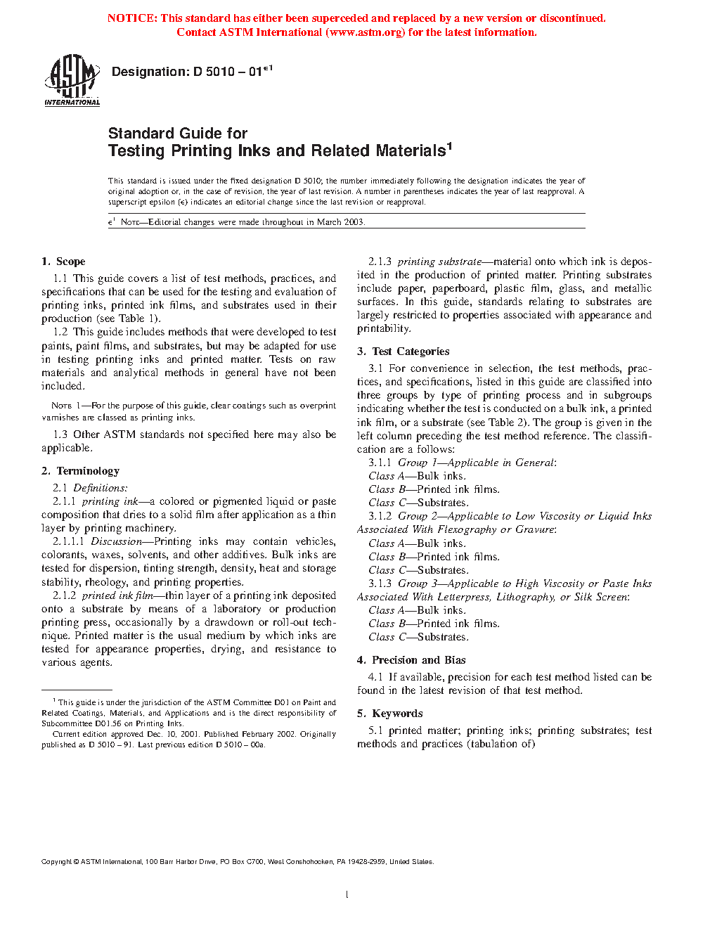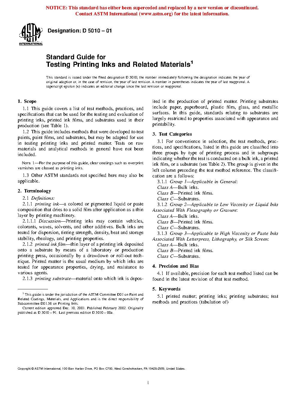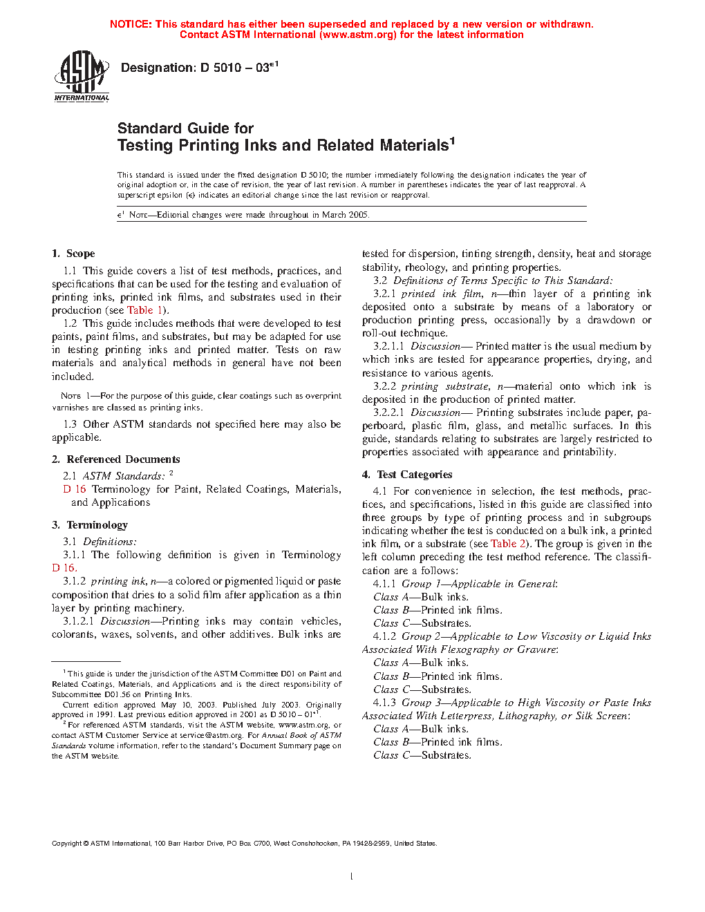 Standard Guide for Testing Printing Inks and Related Materials (Withdrawn 2017)