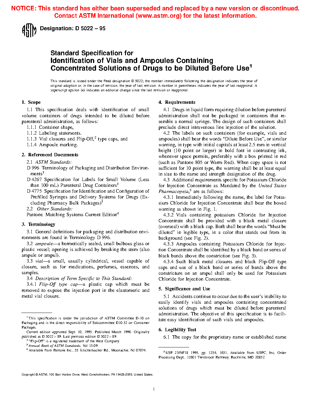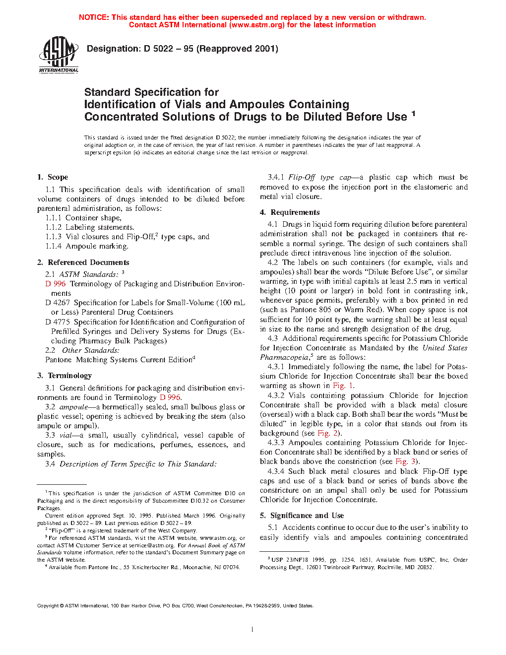 Standard Specification for Identification of Vials and Ampoules Containing Concentrated Solutions of Drugs to be Diluted Before Use