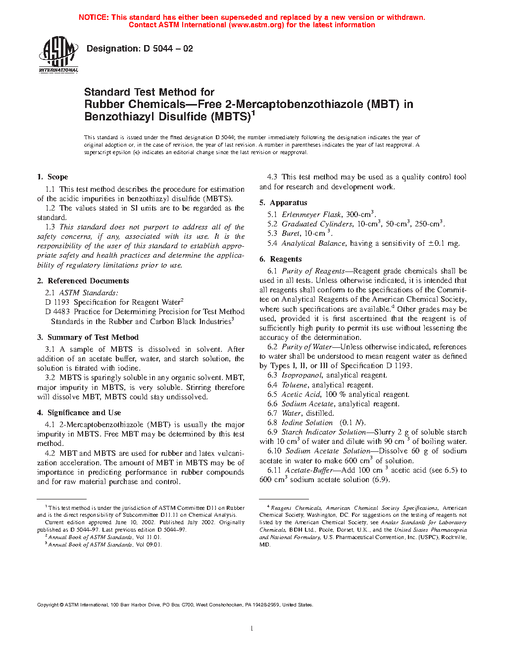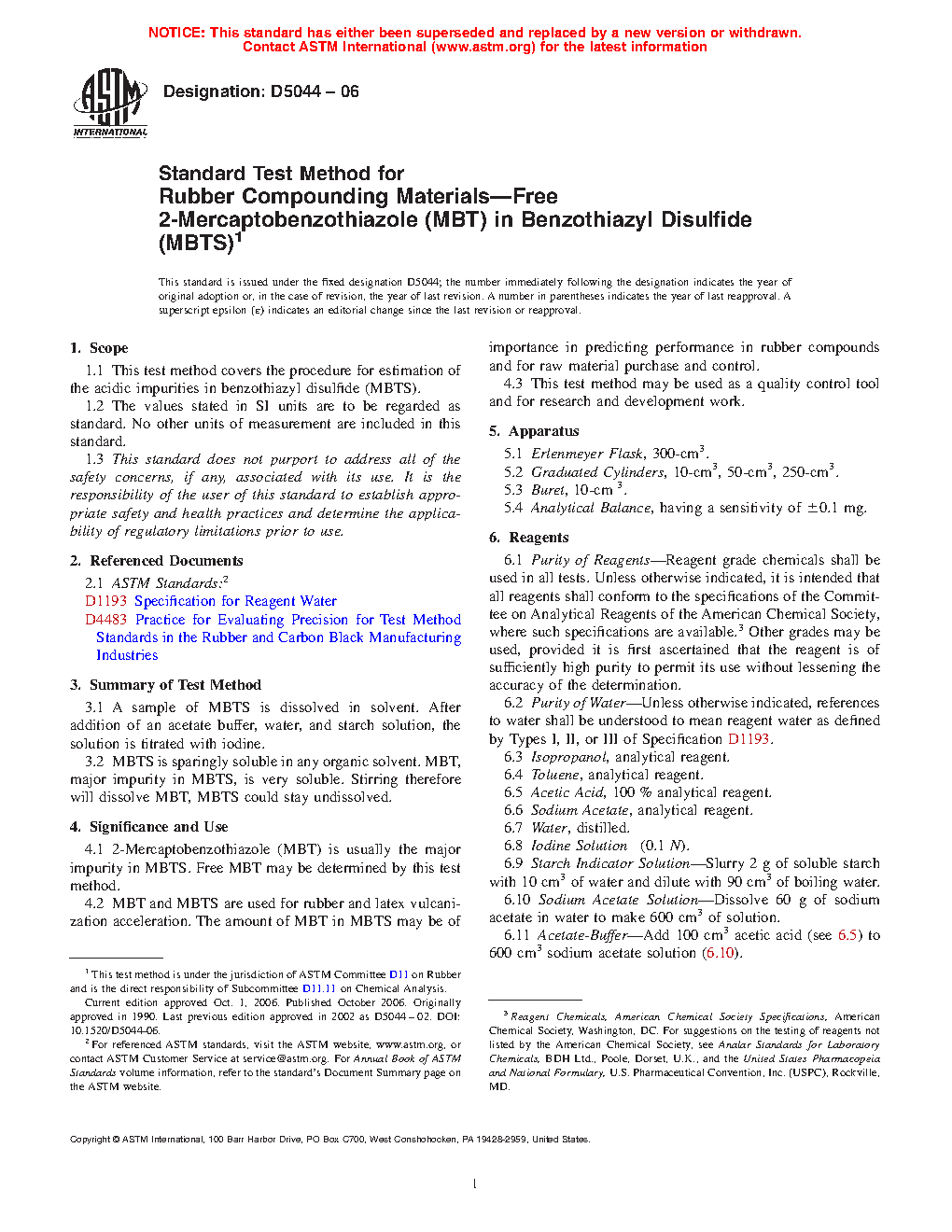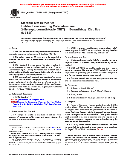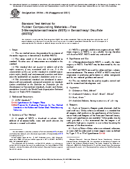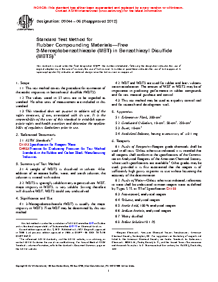 4.1 2-Mercaptobenzothiazole (MBT) is usually the major impurity in MBTS. Free MBT may be determined by this test method.