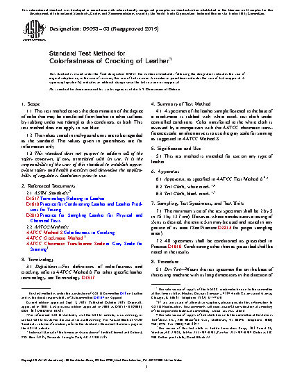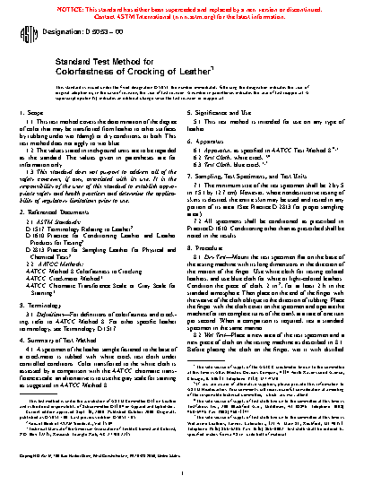 1.1 This test method covers the determination of the degree of color that may be transferred from leather to other surfaces by rubbing under wet (damp) or dry conditions, or both. This test method does not apply to wet blue.