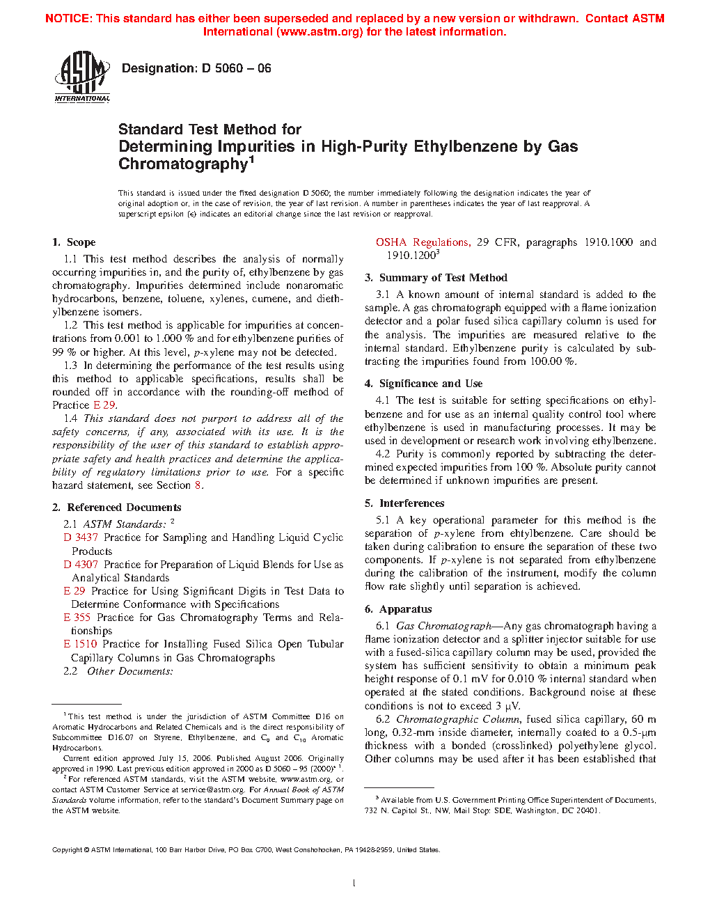 1.2 This test method is applicable for impurities at concentrations from 0.001 to 1.000 % and for ethylbenzene purities of 99 % or higher. At this level, p-xylene may not be detected.