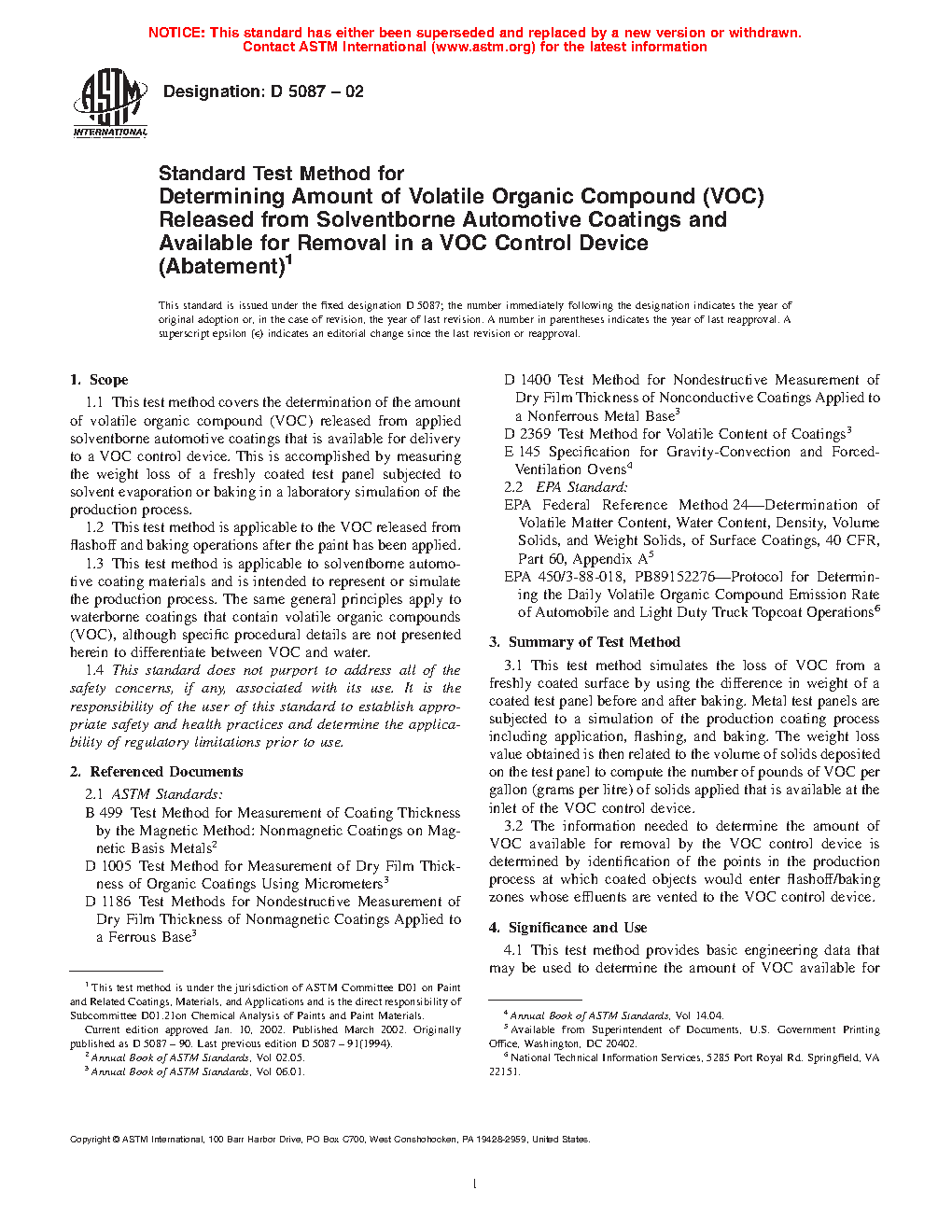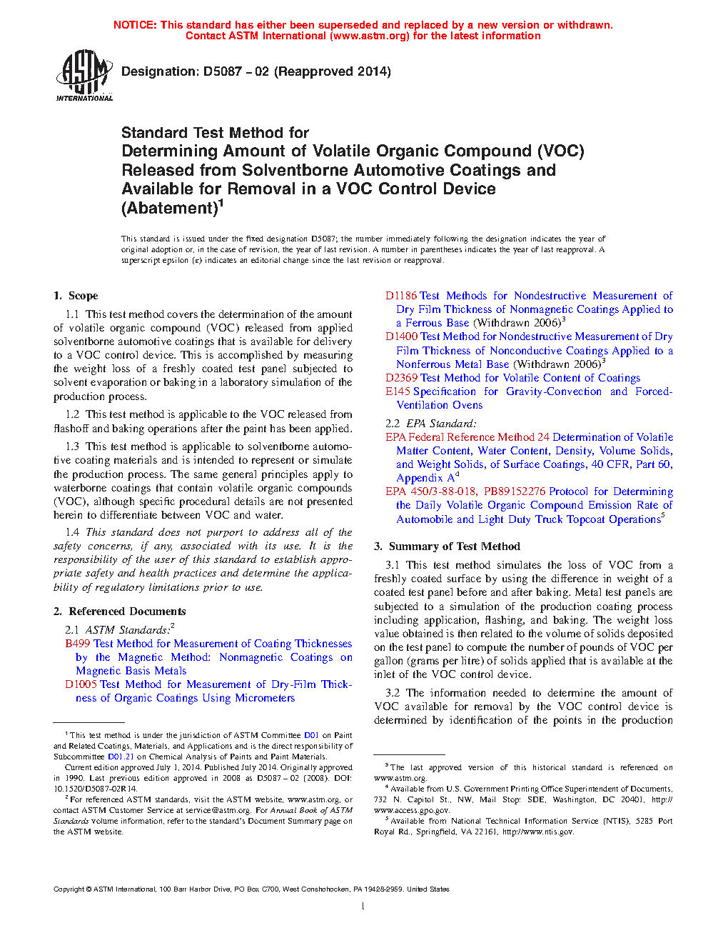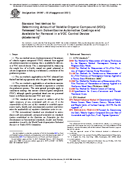 1.3 This test method is applicable to solventborne automotive coating materials and is intended to represent or simulate the production process. The same general principles apply to waterborne coatings that contain volatile organic compounds (VOC), although specific procedural details are not presented herein to differentiate between VOC and water.