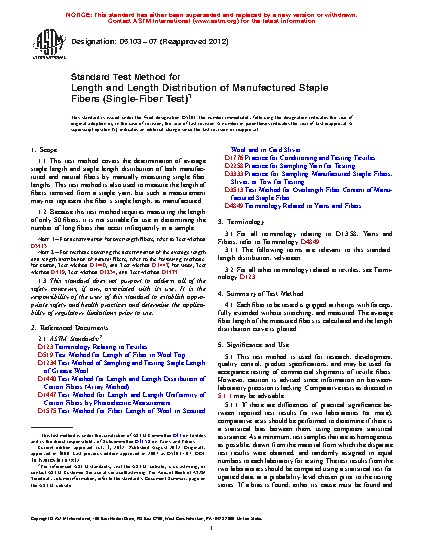 Note 2—For methods covering the determination of the average length and length distribution of natural fibers, refer to the following methods: for cotton, Test Method D1440, and Test Method D1447, for wool, Test Method D519, Test Method D1234, and Test Method D1575.