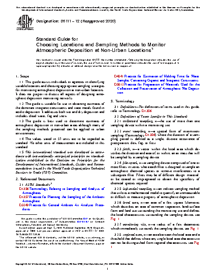 1.1 This guide assists individuals or agencies in identifying suitable locations and choosing appropriate sampling strategies for monitoring atmospheric deposition at non-urban locations. It does not purport to discuss all aspects of designing atmospheric deposition monitoring networks.