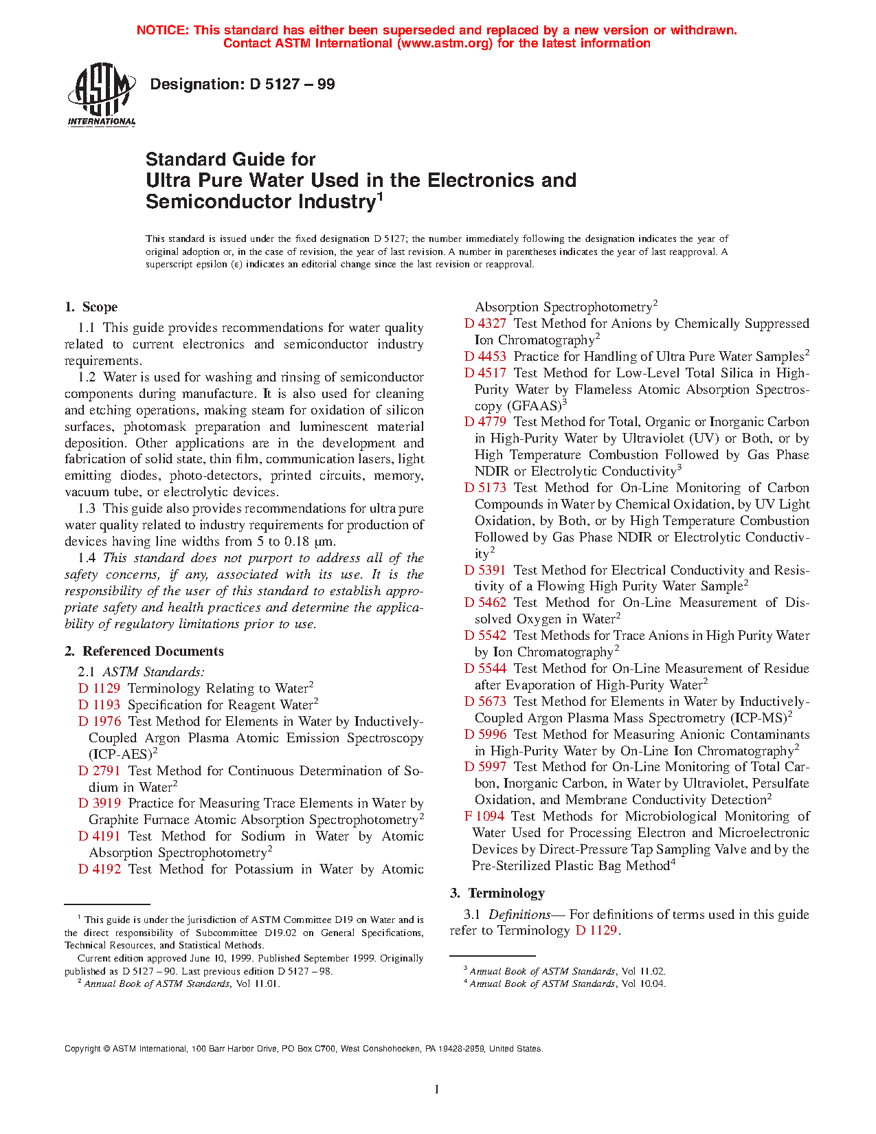 TABLE 1 Requirements for Water at the Point of Distribution in the Electronics and Semiconductor IndustriesA