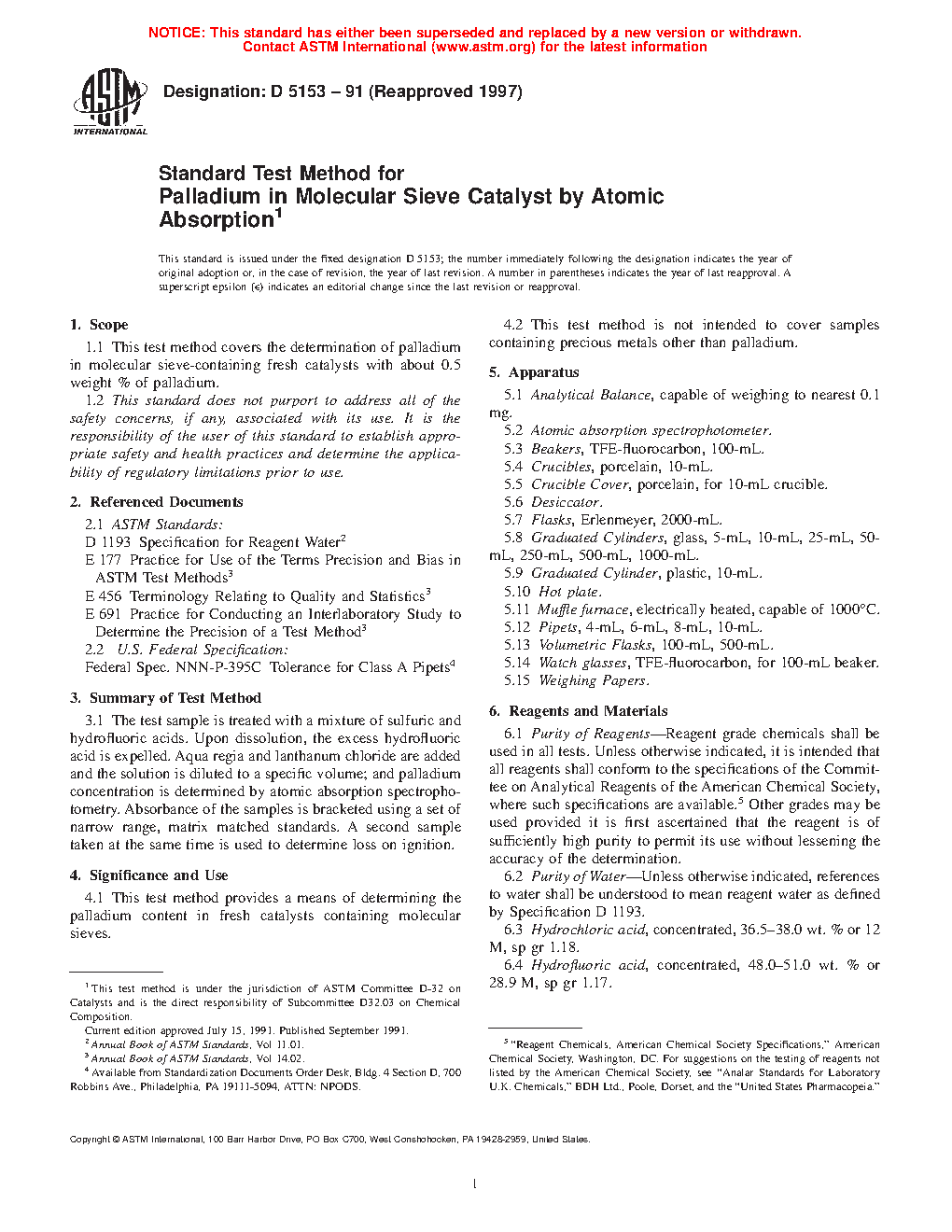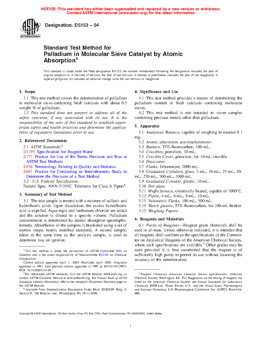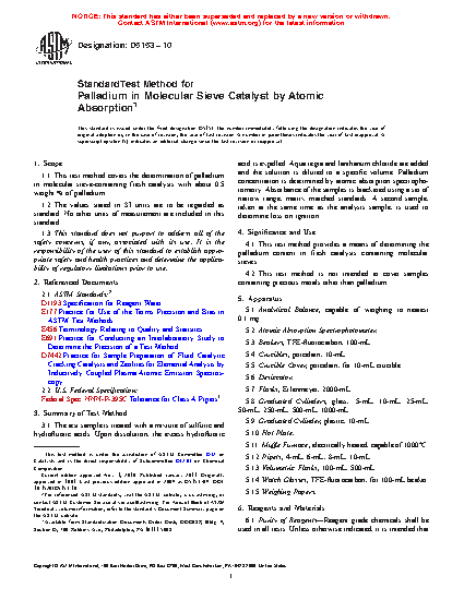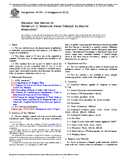 4.1 This test method provides a means of determining the palladium content in fresh catalysts containing molecular sieves.