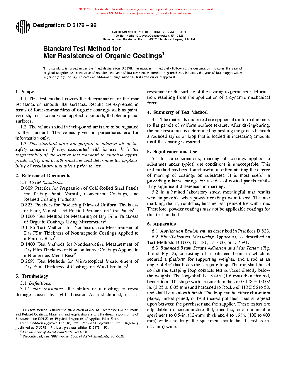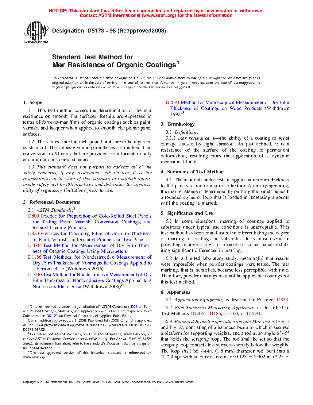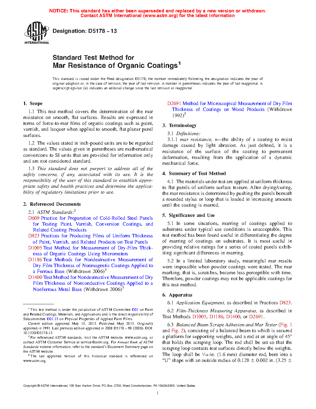 5.2 In a limited laboratory study, meaningful mar results were impossible when powder coatings were tested. The mar marking, that is, scratches, became less perceptible with time. Therefore, powder coatings may not be applicable coatings for this test method.