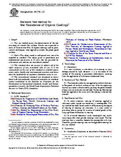 5.1 In some situations, marring of coatings applied to substrates under typical use conditions is unacceptable. This test method has been found useful in differentiating the degree of marring of coatings on substrates. It is most useful in providing relative ratings for a series of coated panels exhibiting significant differences in marring.