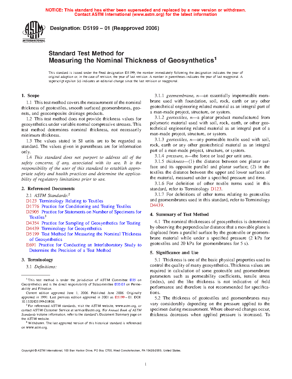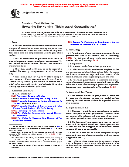 1.2 These test methods do not provide thickness values for geosynthetics under variable normal compressive stresses. These test methods determine nominal thickness, not necessarily minimum thickness.