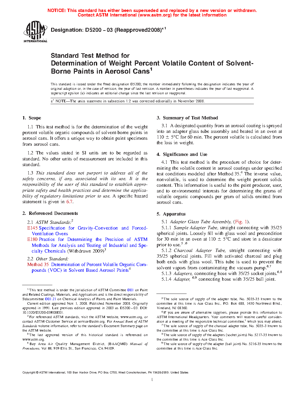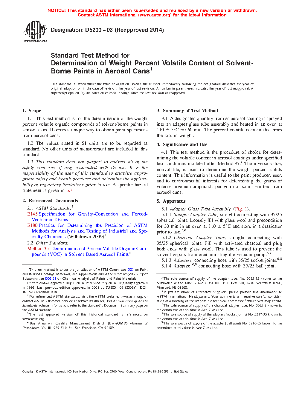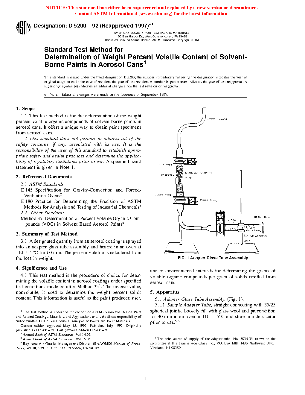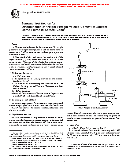 4.1 This test method is the procedure of choice for determining the volatile content in aerosol coatings under specified test conditions modeled after Method 35.4 The inverse value, nonvolatile, is used to determine the weight percent solids content. This information is useful to the paint producer, user, and to environmental interests for determining the grams of volatile organic compounds per gram of solids emitted from aerosol cans.