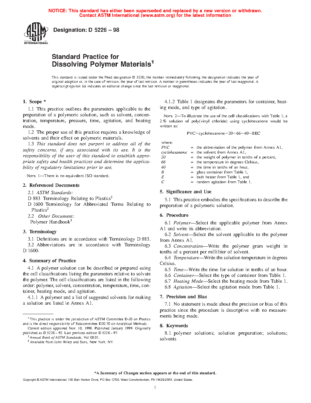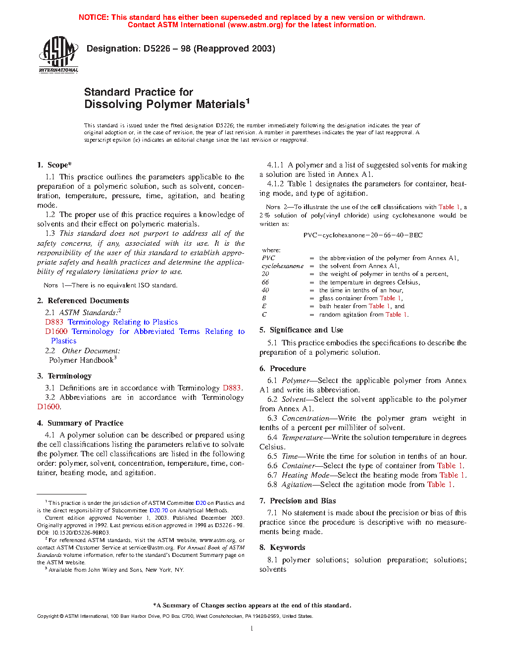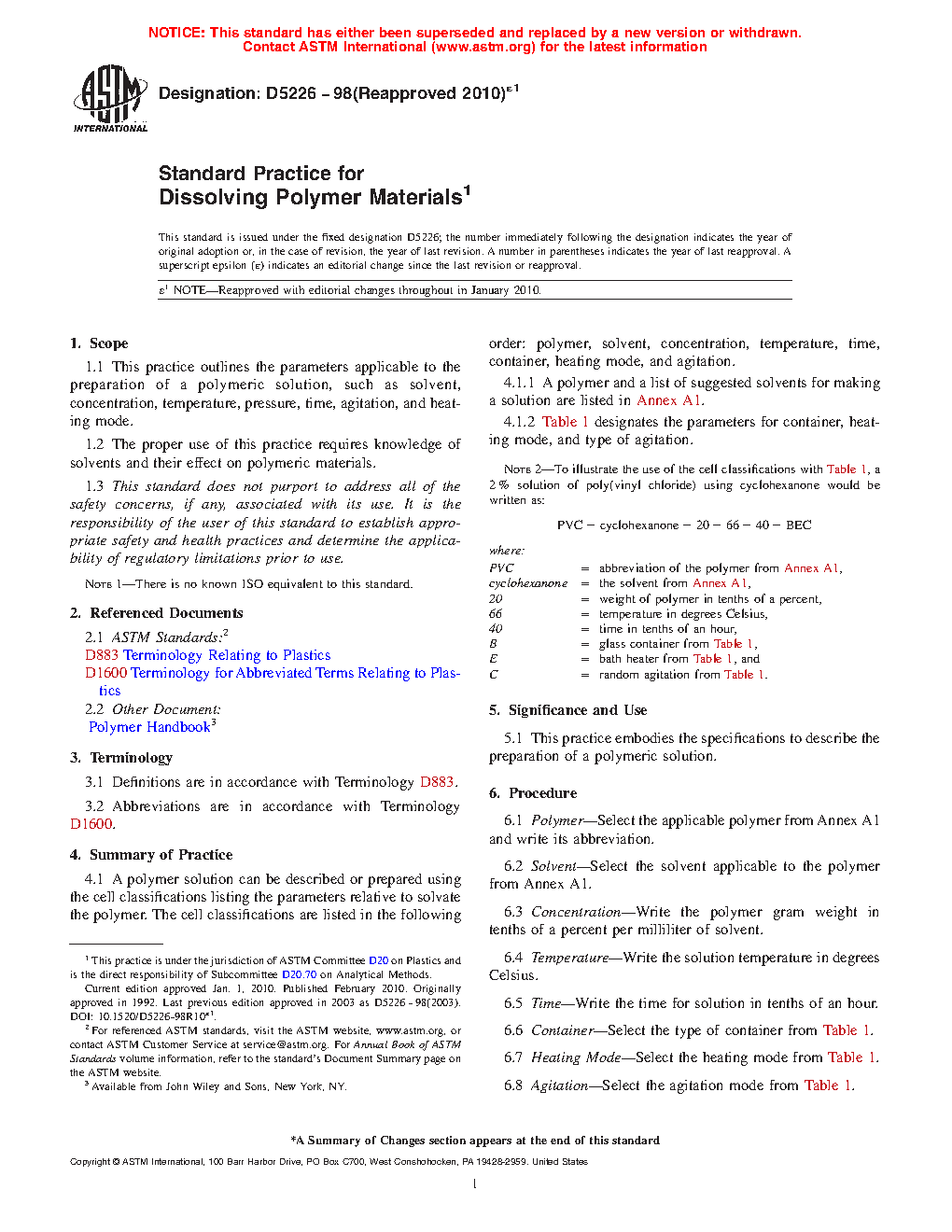5.1 This practice embodies the specifications to describe the preparation of a polymeric solution.