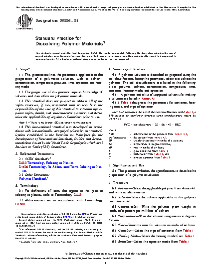 1.1 This practice outlines the parameters applicable to the preparation of a polymeric solution, such as solvent, concentration, temperature, pressure, time, agitation, and heating mode.