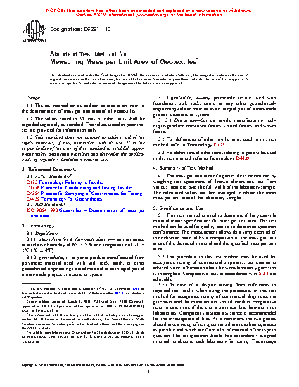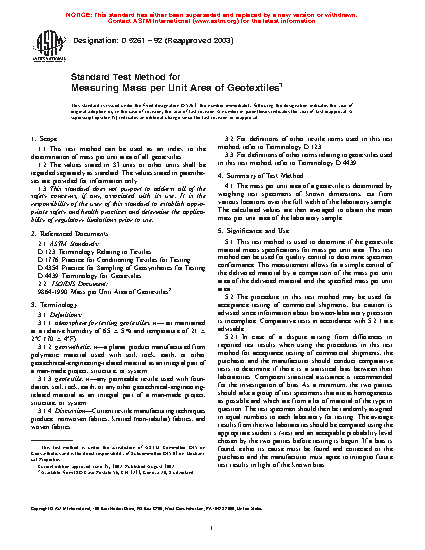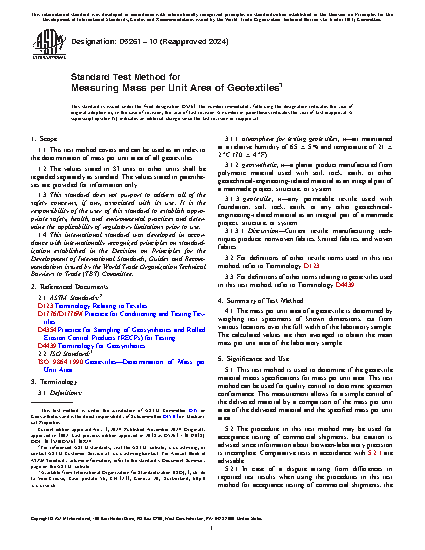 1.1 This test method covers and can be used as an index to the determination of mass per unit area of all geotextiles.