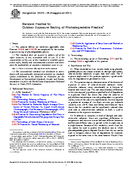Standard Practice for Outdoor Exposure Testing of Photodegradable Plastics