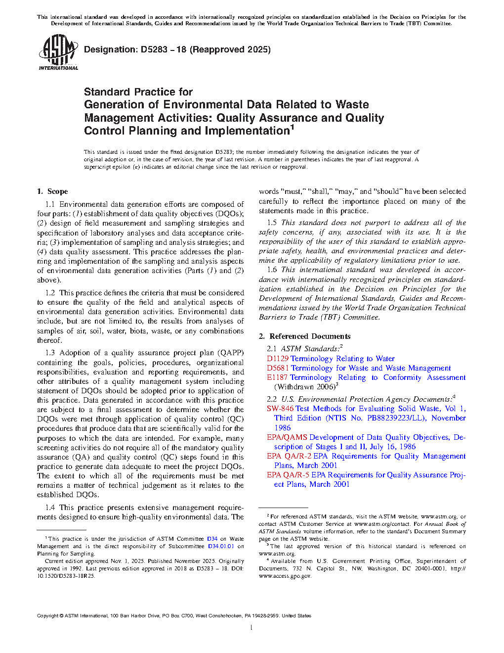 1.4 This practice presents extensive management requirements designed to ensure high-quality environmental data. The words “must,” “shall,” “may,” and “should” have been selected carefully to reflect the importance placed on many of the statements made in this practice.