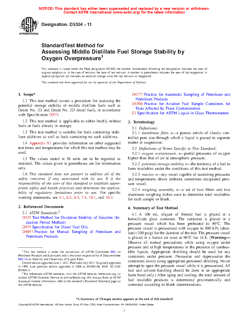 1.1 This test method covers a procedure for assessing the potential storage stability of middle distillate fuels such as Grade No. 1D and Grade No. 2D diesel fuels, in accordance with Specification D975.