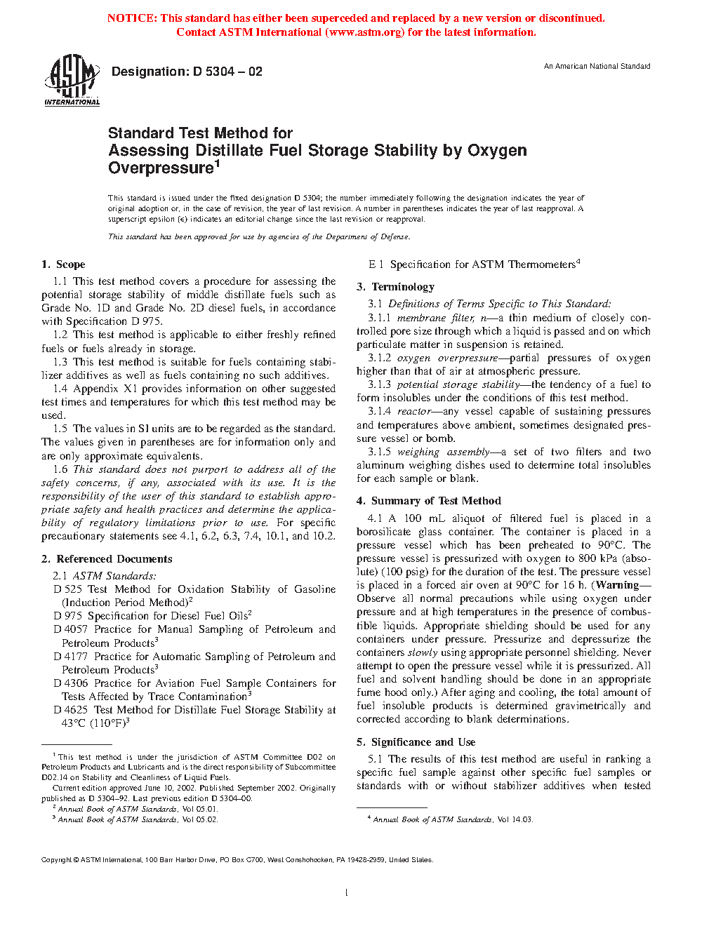 5.1 The results of this test method are useful in ranking a specific fuel sample against other specific fuel samples or standards when tested under identical conditions. Specific fuel samples containing dispersant additives, such as dispersant-containing stability additives, have shown inaccurate ranking against fuel samples that do not contain dispersant additives using this test method.3 This test method is not meant to relate a specific fuel to specific field handling and storage conditions. The formation of insolubles is affected by the material present in the storage container and by the ambient conditions. Since this test method is conducted in glass under standardized conditions, the results from different fuels can be compared on a common basis.