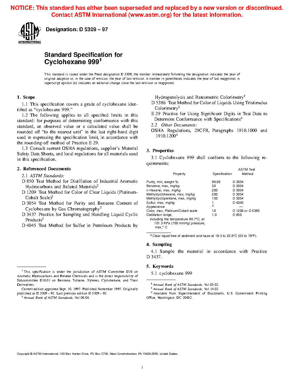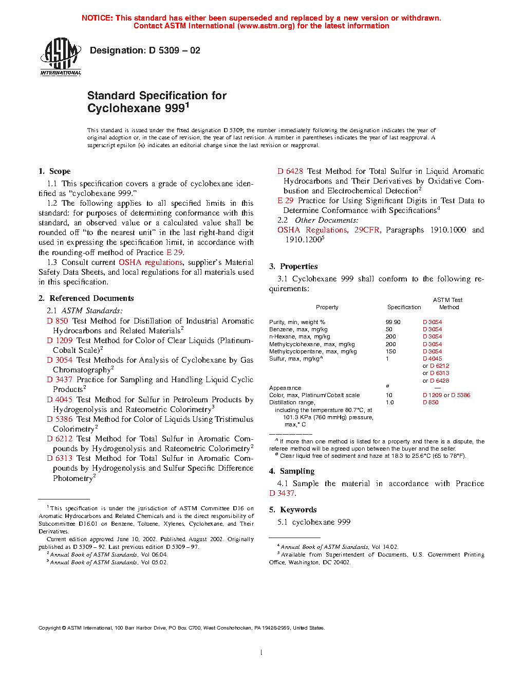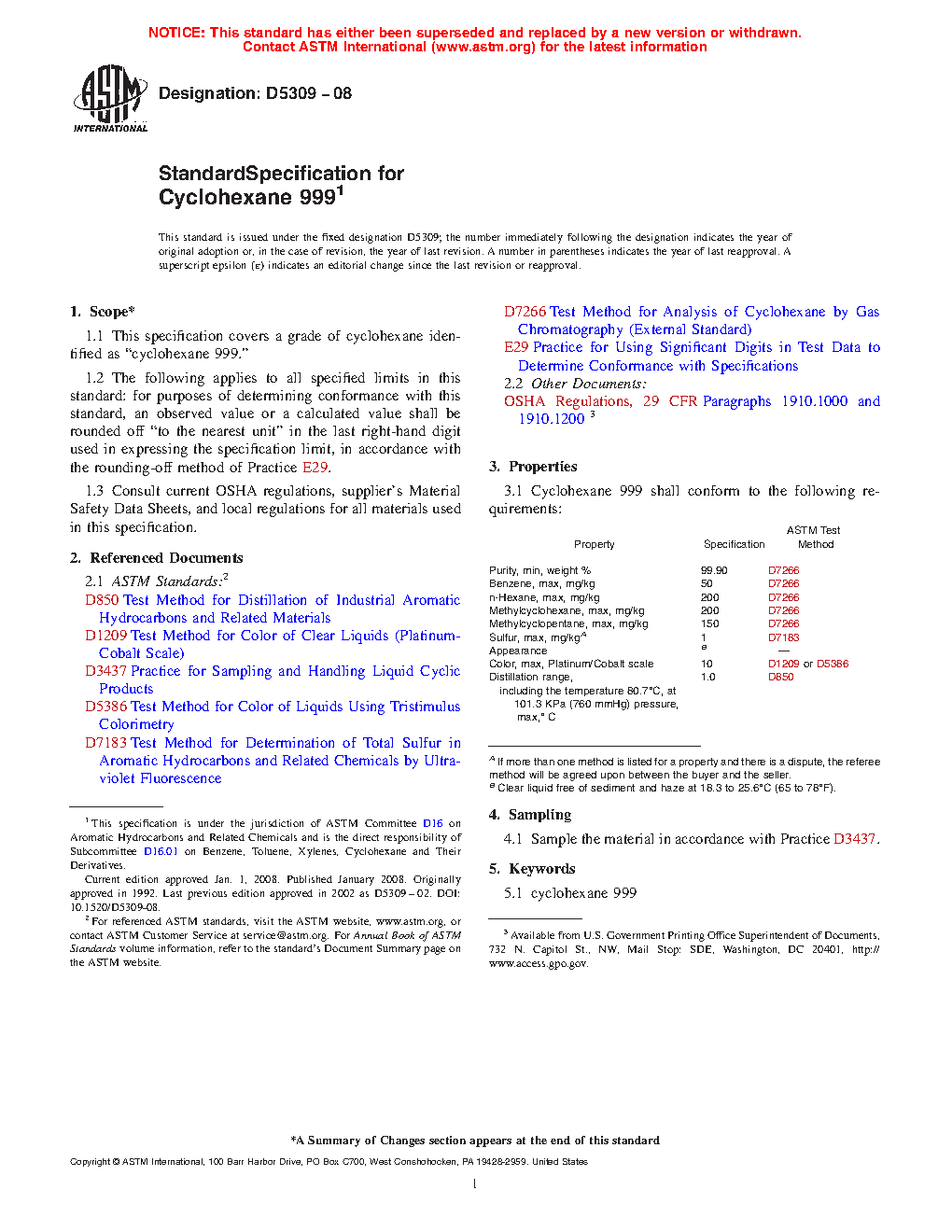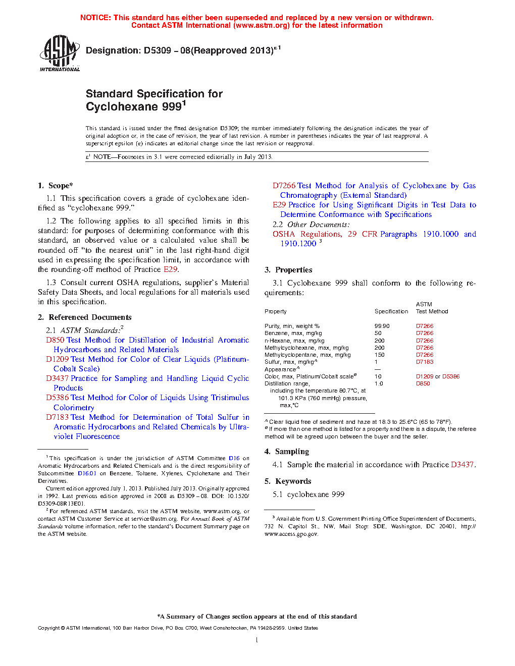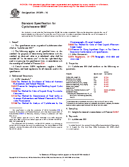 1.1 This specification covers a grade of cyclohexane identified as "cyclohexane 999."