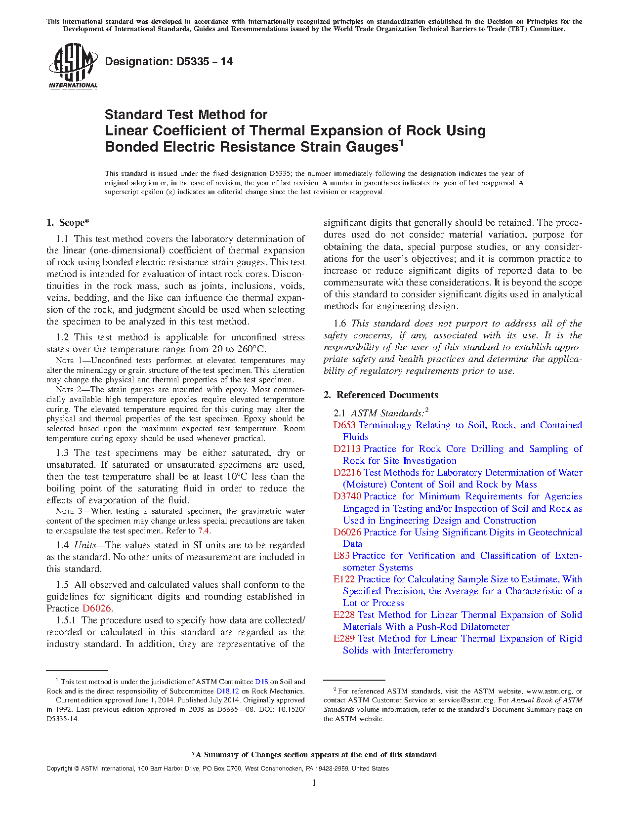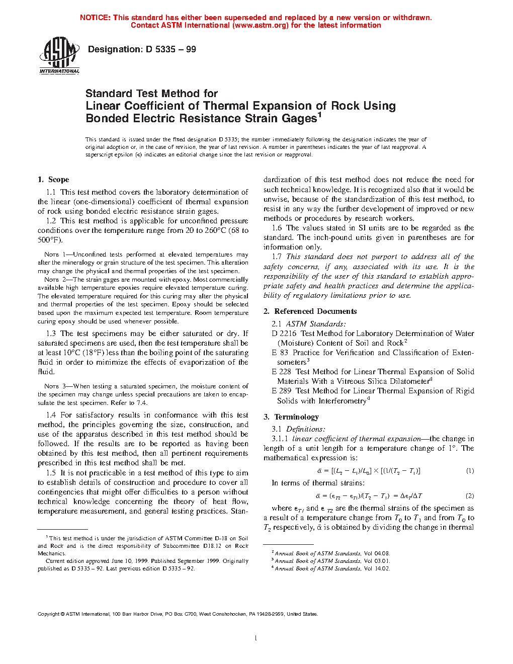 The linear coefficient of thermal expansion, α, of rock is known to vary as the temperature changes. Rock thermal strain is normally not a linear function of temperature. This test method provides a procedure for continuously monitoring thermal strain as a function of temperature. Therefore, information on how a changes with temperature is obtained.